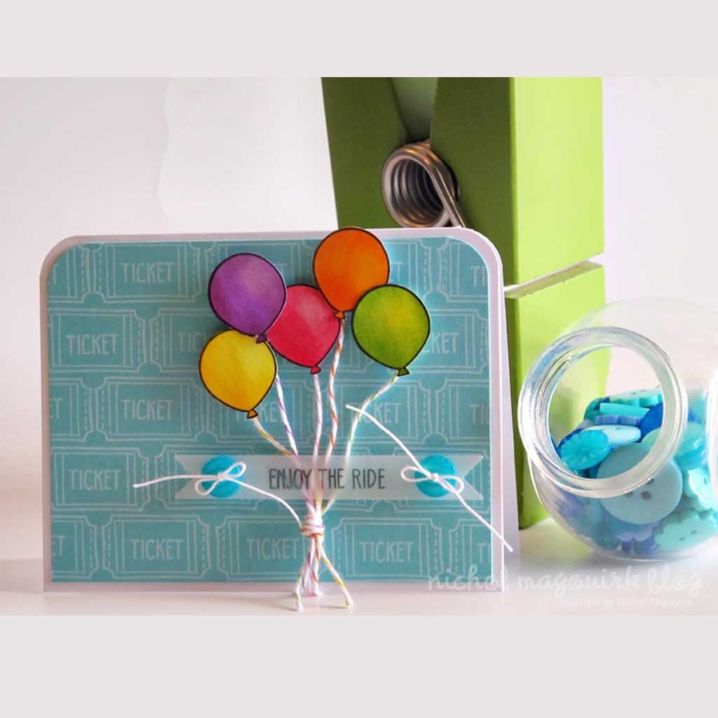 With this set of 14 clear stamps, you can visit the fair any time of the year! Have fun with a whimsical ferris wheel, carousel, cotton candy, balloons, and more.