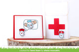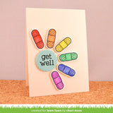 This mini collection of eight clear stamps has everything you need to make a cute get well soon card. The set features a "love" prescription, a nurse bird, bandage, and "get well soon" sentiment.