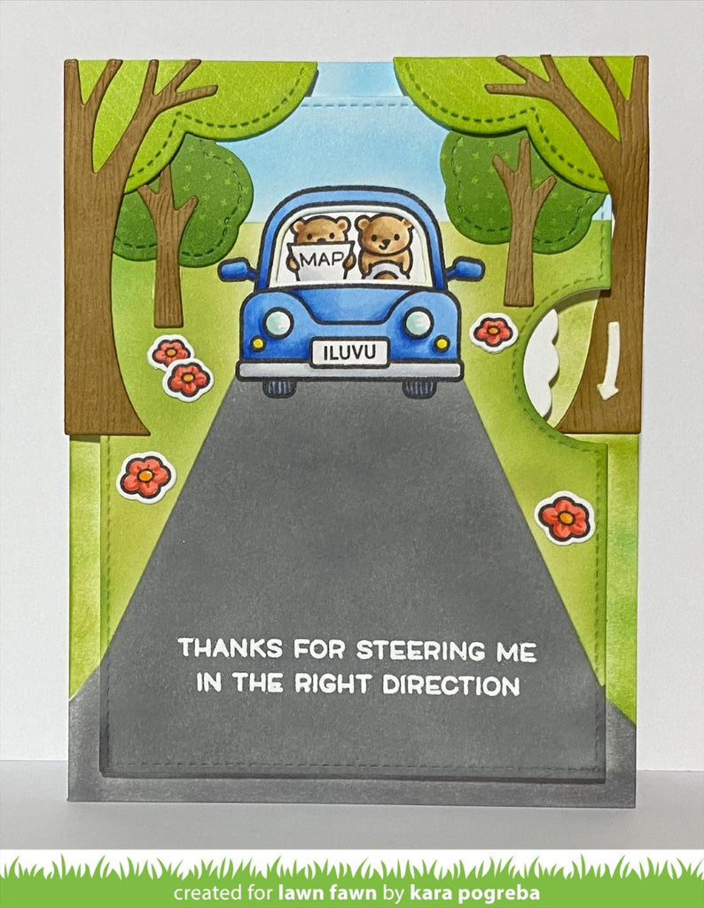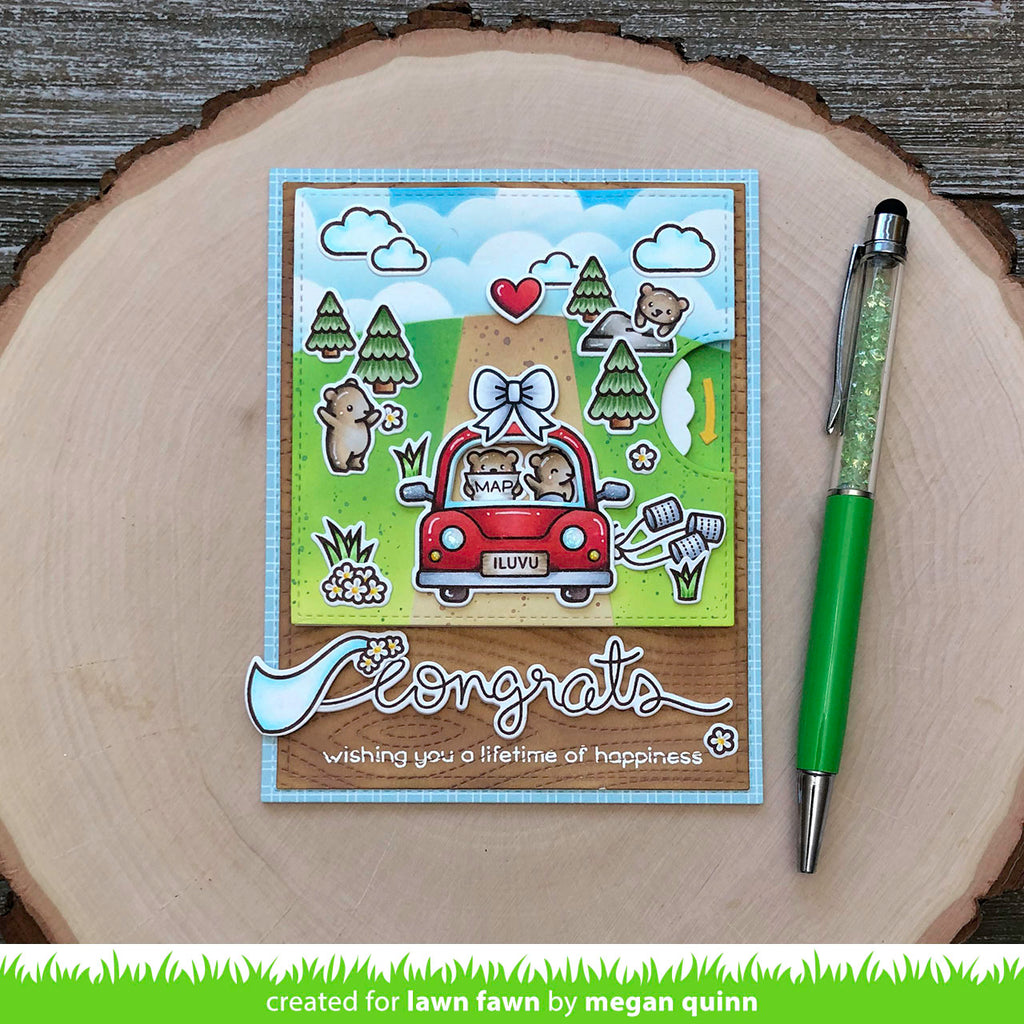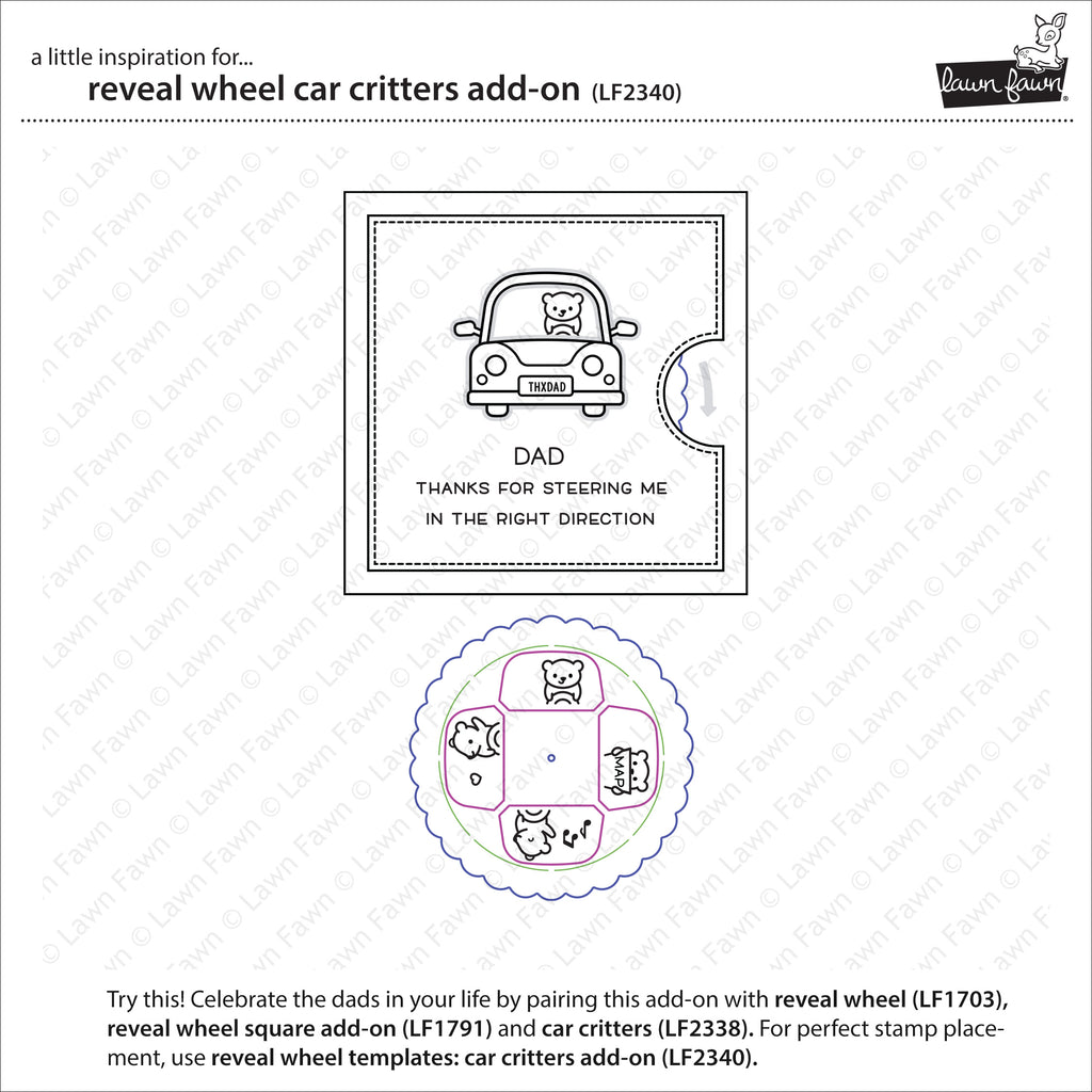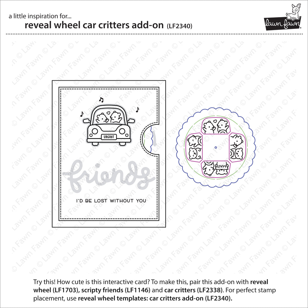This set coordinates with Reveal Wheel and Car Critters to make a fun, interactive card with passengers inside a car! To make it even easier, use the optional Reveal Wheel Templates: Car Critters Add-On for quick stamp placement!