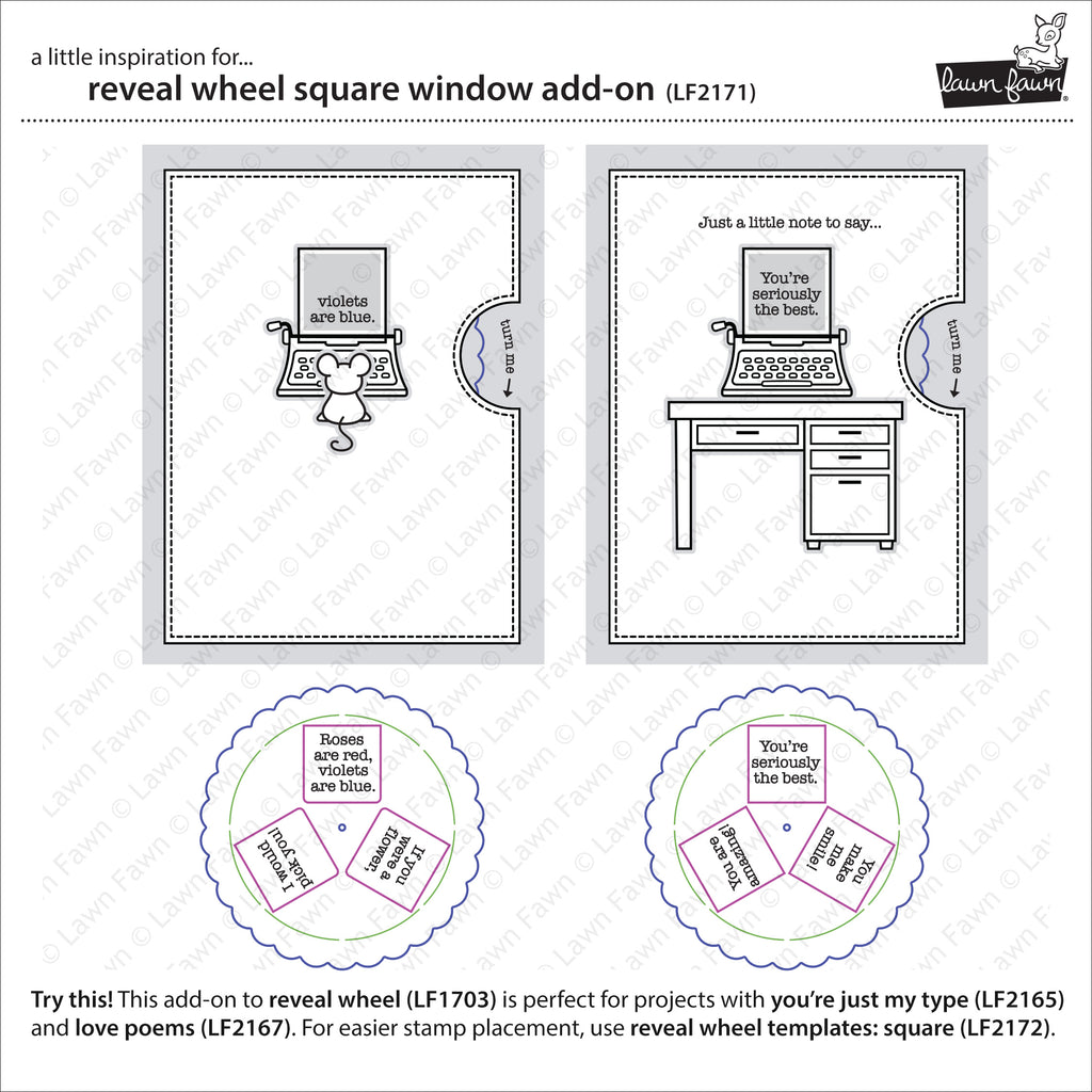 Make an interactive card with this versatile square! This set coordinates with Reveal Wheel to create a card that reveals different colors, sentiments, or images as you turn a wheel. To make it even easier, use the option Reveal Wheel Templates: Square.