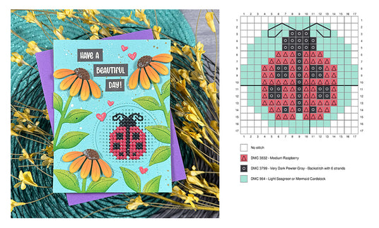 Little Lady is visiting the garden to wish you Luck and a Beautiful Day! She is a perfect addition to the Big Blossom Backdrop, making a sweet little home amongst the flowers! Pair this little stitch with Henry's Build-A-Sentiment: Butterfly to flutter by and say hello!
