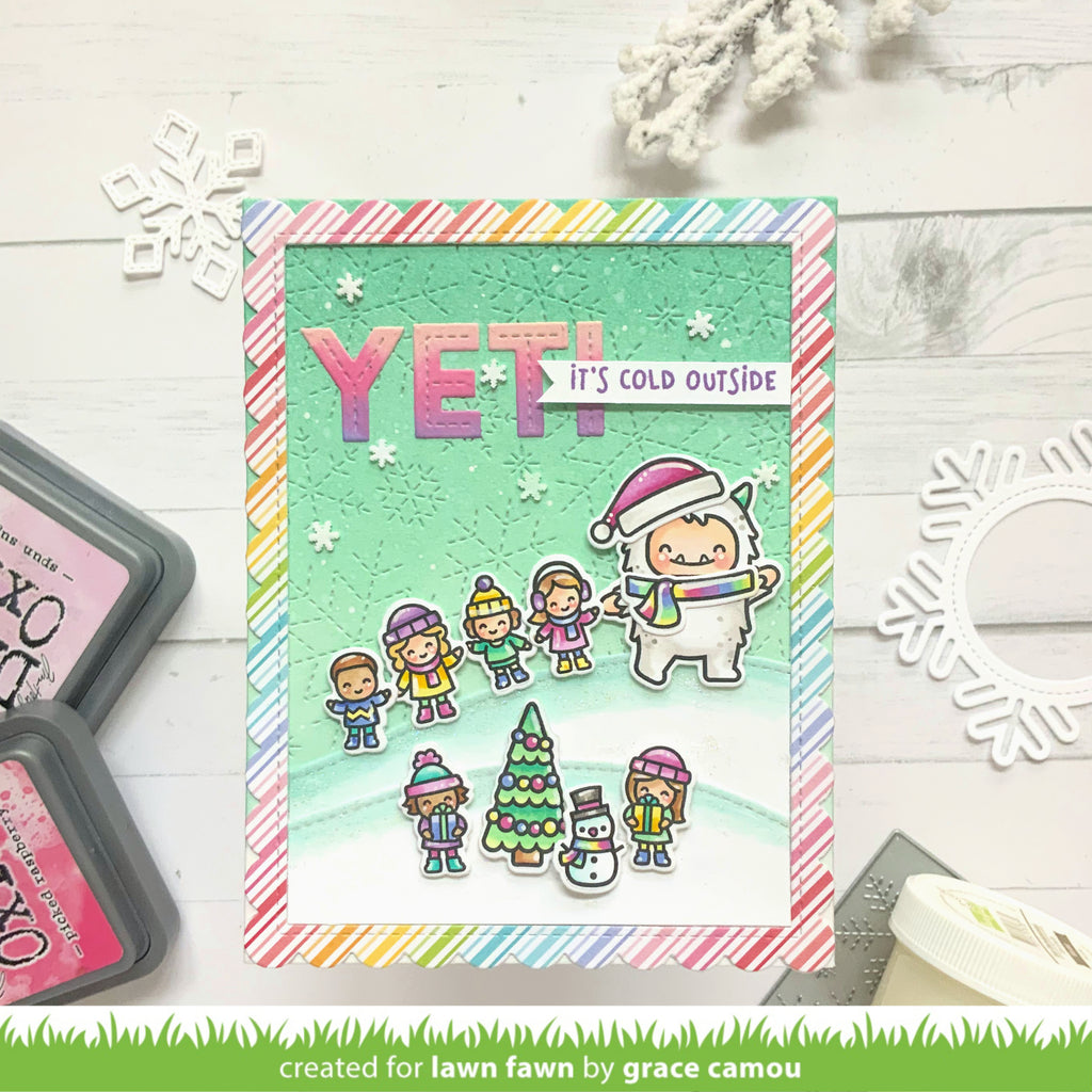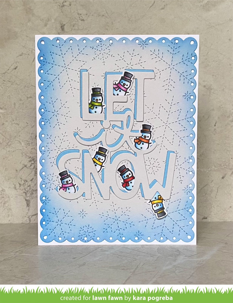 Coordinating set ideas: Pair this pretty backdrop with Giant Holiday Messages to make quick and beautiful holiday cards. Pair it with Outside In Stitched Snowflake, Stitched Snowflake Frame or Magic Iris Snowflake Add-On, and a pretty greeting from Magic Holiday Messages! Create a snow falling backdrop for the penguins from Penguin Party.