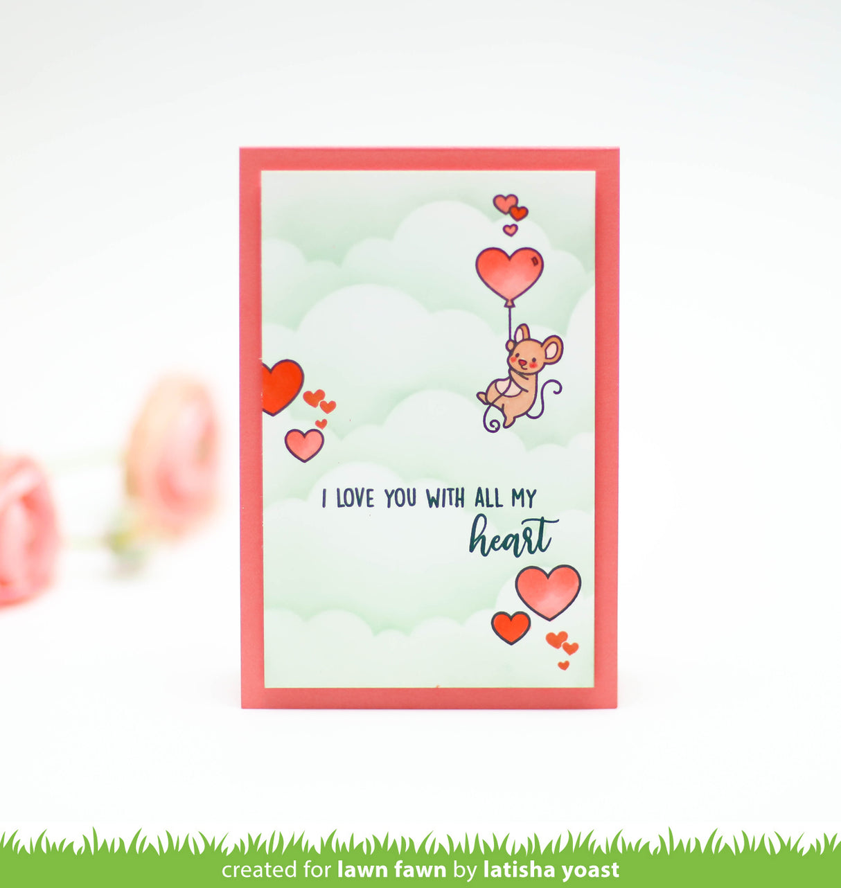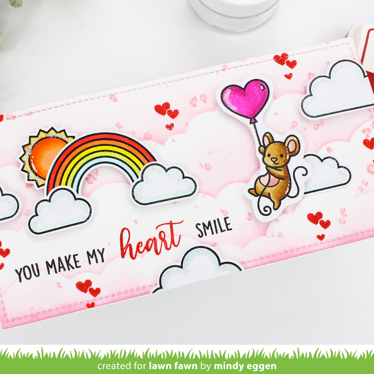 Coordinating set ideas: Create an inky sky with Cloud Background Stencils and Falling Hearts Stencils to set the scene for your balloon flying mouse! Add more friends with our Mice are so cute! Collection!