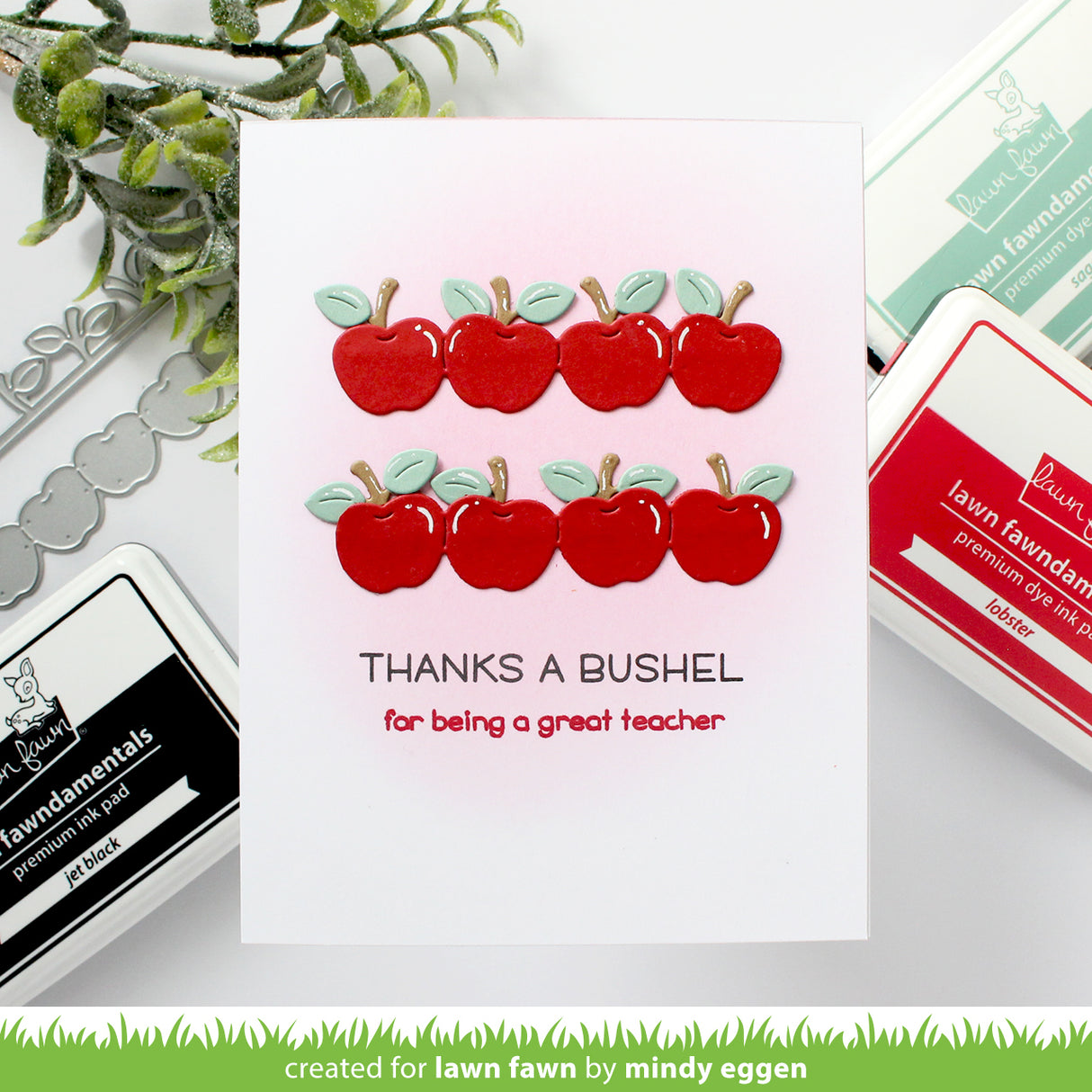 Coordinating set ideas: Pair this apple border with Thanks, Teacher Line Border to make simply beautiful teacher cards. Use it to add more apple fun to an Apple-solutely Awesome card! Pair they border with the Simply Fall Sentiments set to add a simple greeting to your quick cards.