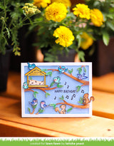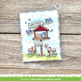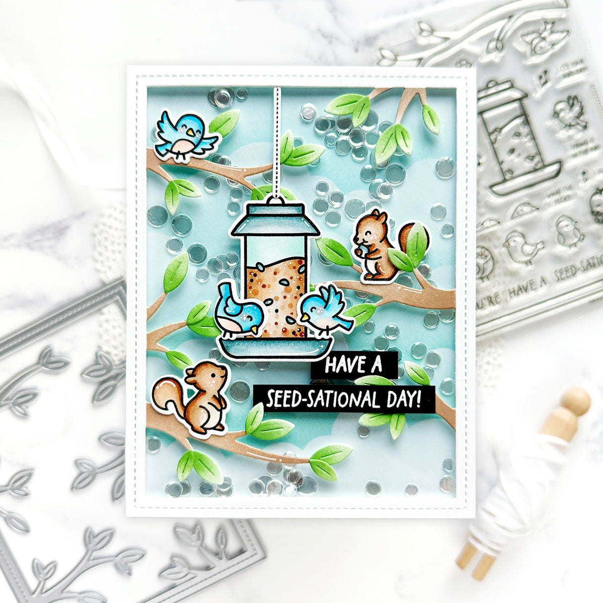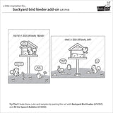 This tweet add-on to Backyard Bird Feeder is the perfect way to add even more cuteness to your backyard scenes! With a new feeder, a cute squirrel friend, dainty blossoms, and lots of chitter you’ll create cute cards quickly!