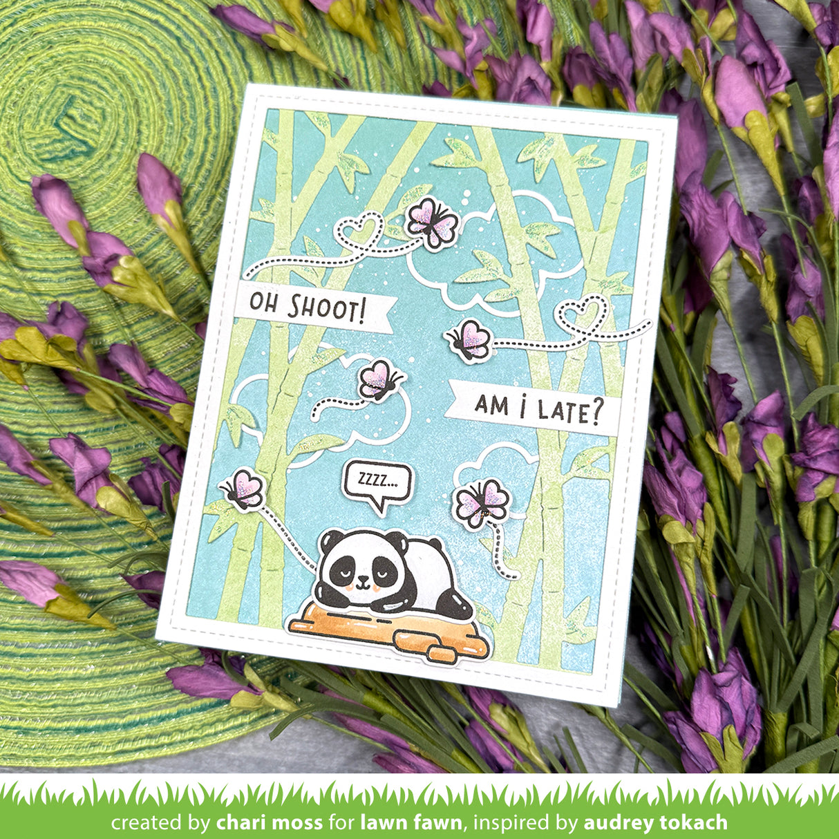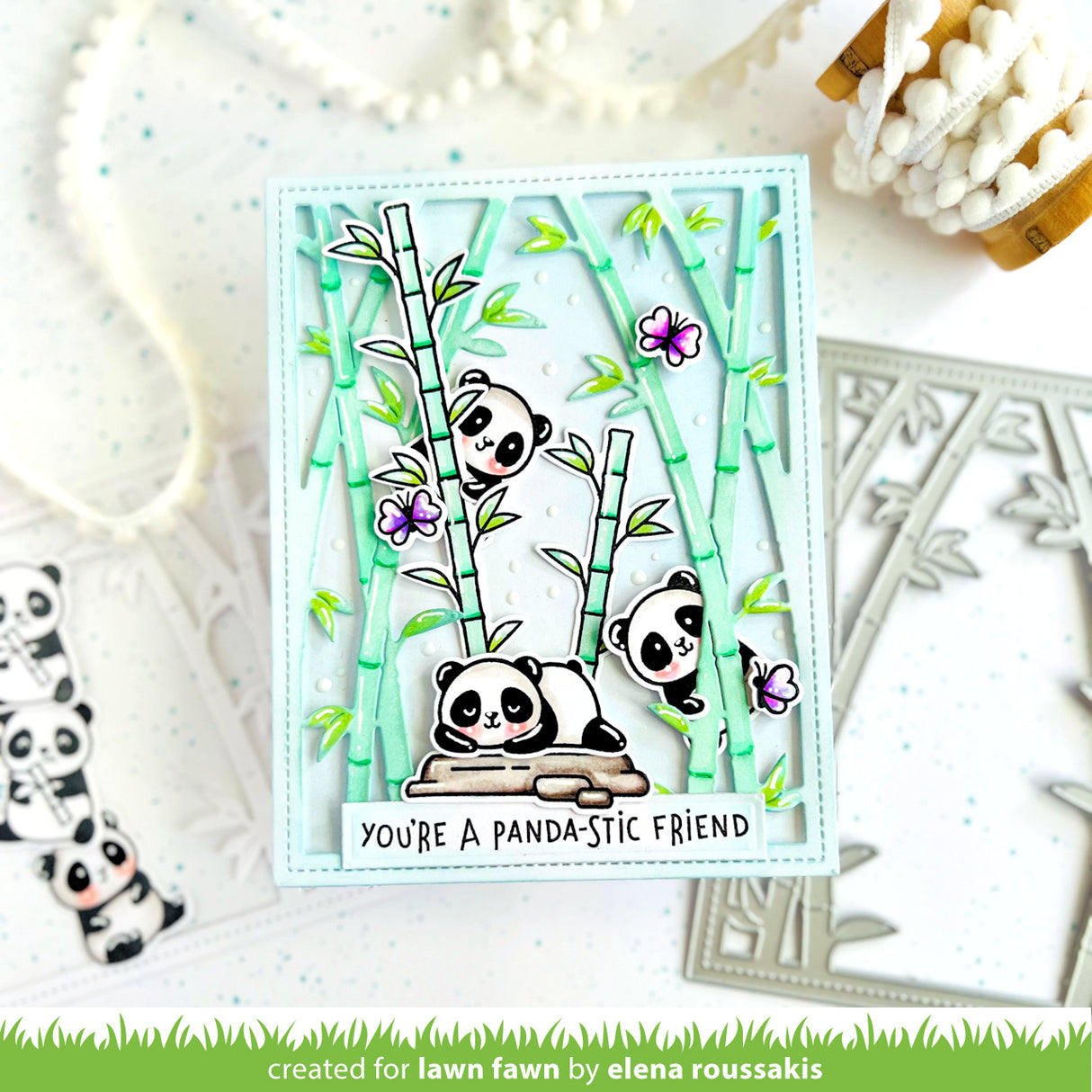 Create a bamboo-tiful forest backdrop for your Panda friends. This fun set includes lots of extra leaves, large and small rocks, and a sweet butterfly for your scene. Use your favorite patterned paper or cardstock for a unique look each time! For a landscape version, check out Bamboo Forest Backdrop: Landscape.