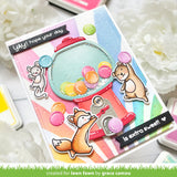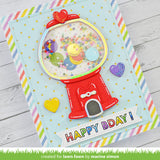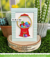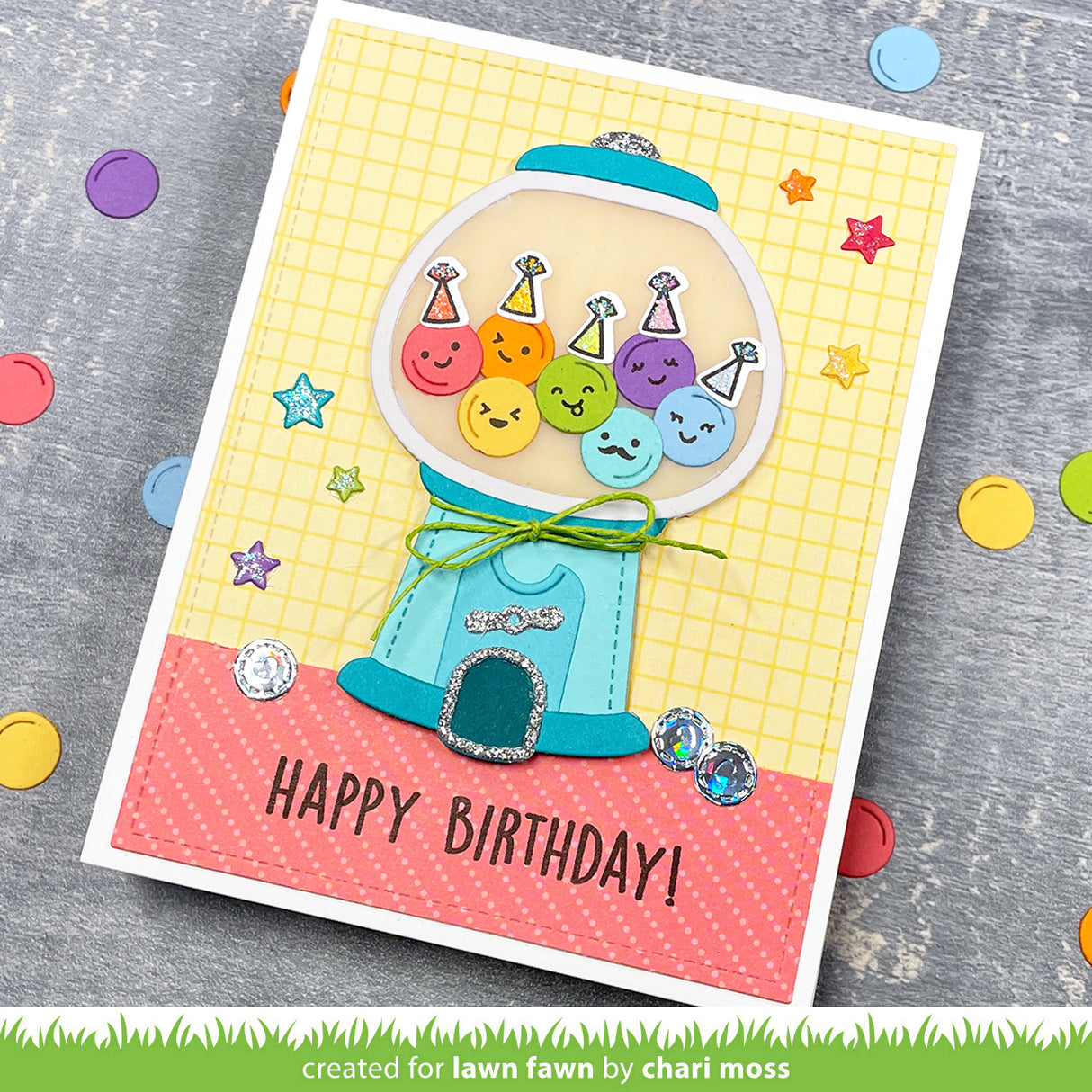 Coordinating set ideas: Magic Messages sentiments fit wonderfully on the globe of the gumball machine for a big way to send smiles! Use this fun dies set with Sweet Smiles for more sentiments and gumball friends.