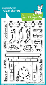 Don't worry if the weather outside is frightful! Have some cookies and milk and stay warm by the fire with this set of 19 clear stamps.