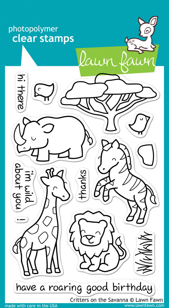 You'll be wild about this set of 14 clear stamps! This collection features a rhino, zebra, lion, giraffe, and sentiments to match.