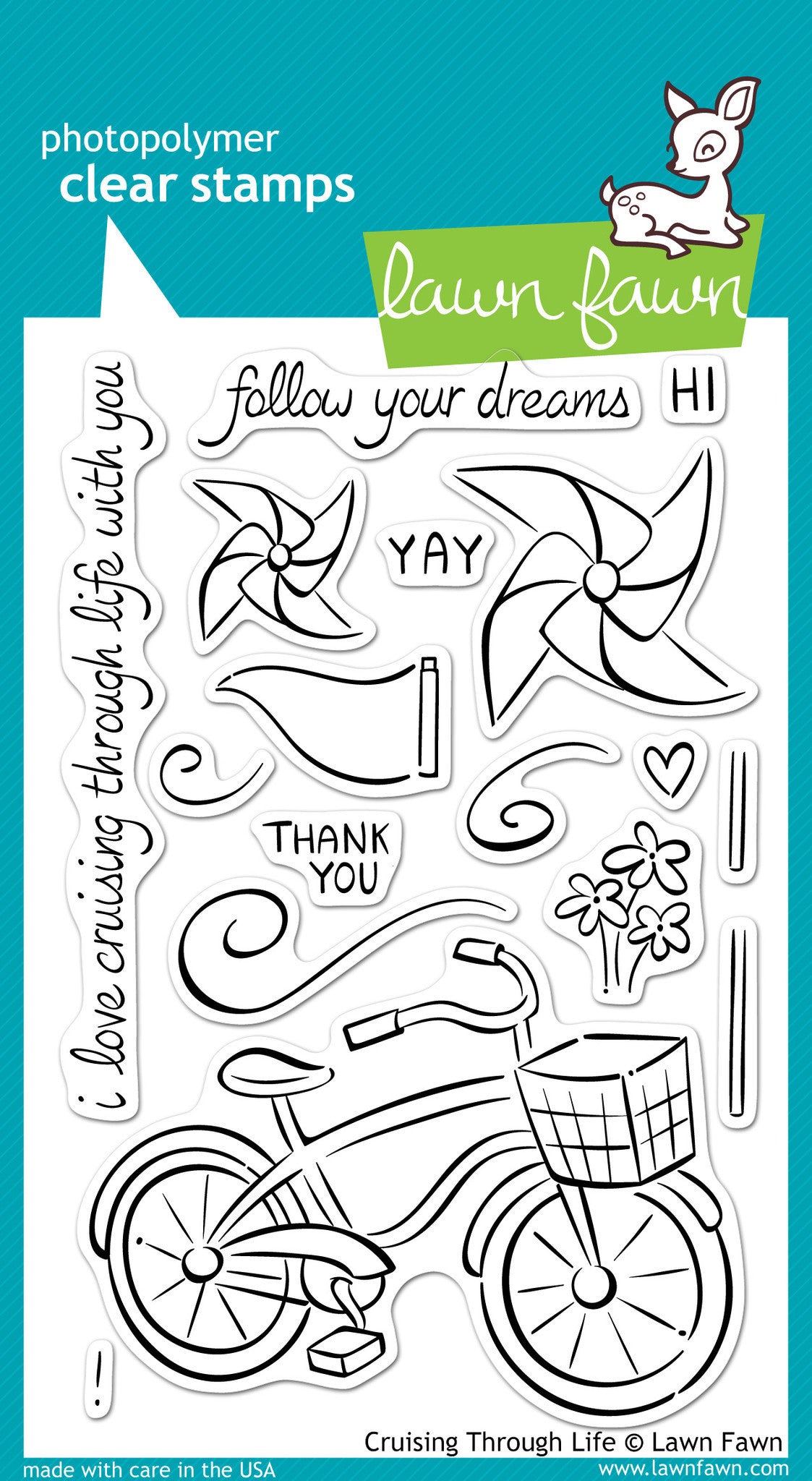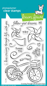These 17 clear stamps are perfect for a sunny day. Go for a spin around the block with a cruiser bicycle, pinwheels, and a fun pennant!