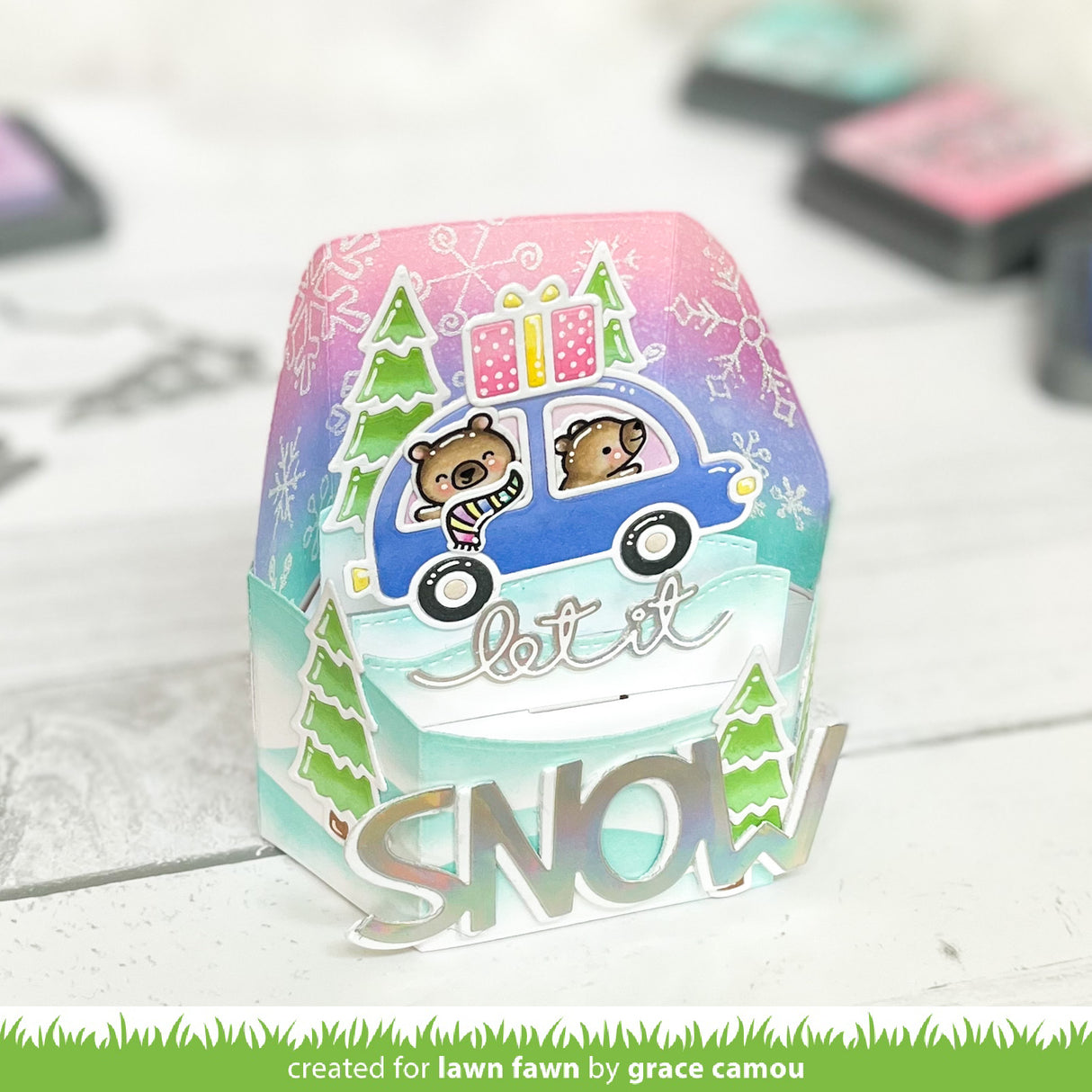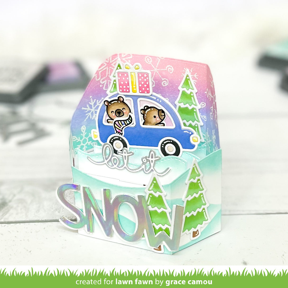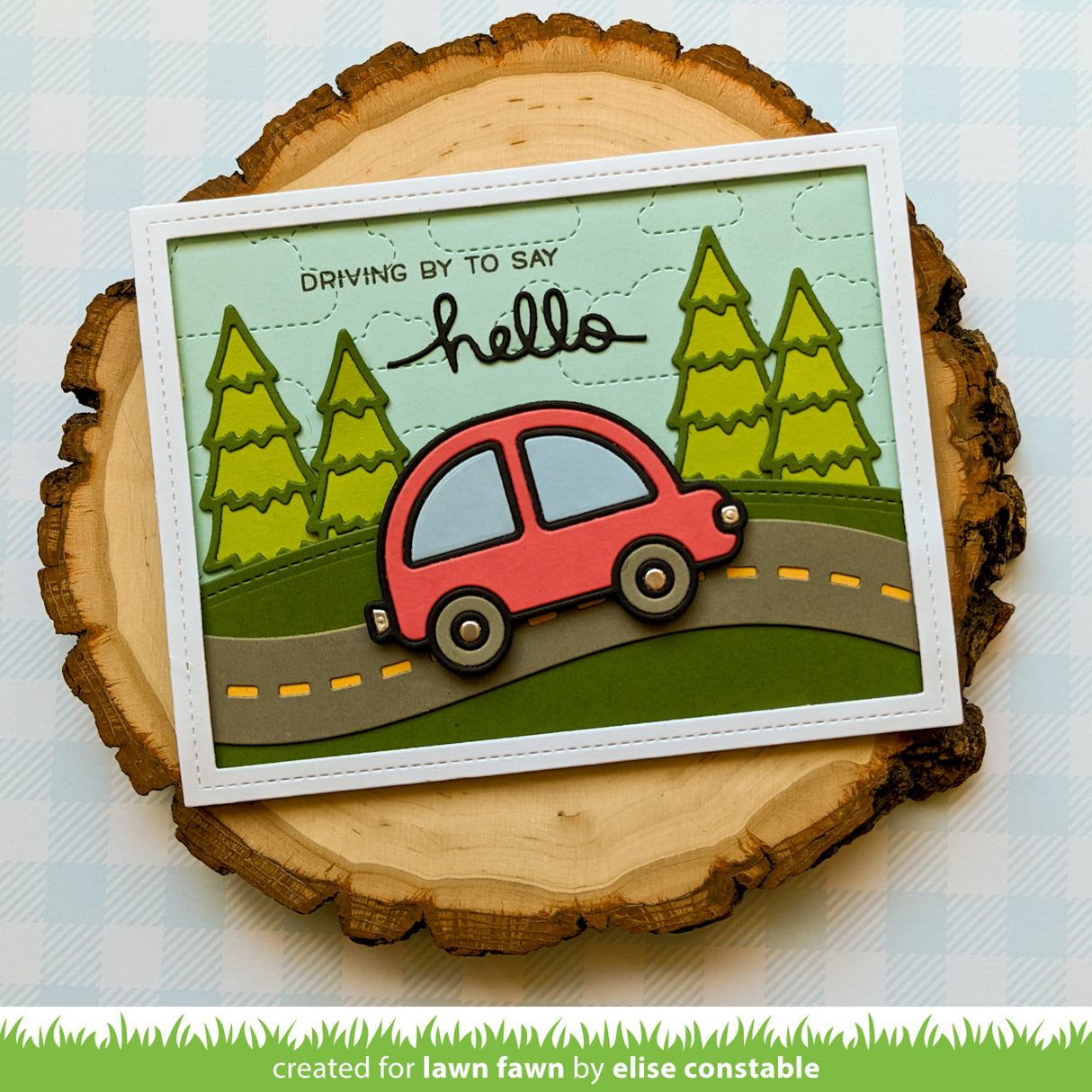 Coordinating set ideas: This set fits perfectly in the Platform Pop-Up! Use the included tree to decorate the background of your scene. Use Over the Mountain Borders as a backdrop for this cute car.