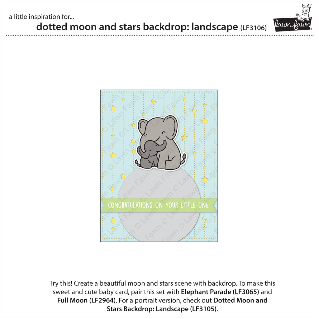 Create a beautifully dainty moon and stars scene with this standard card sized backdrop die. For a landscape version, check out Dotted Moon and Stars Backdrop: Landscape.
