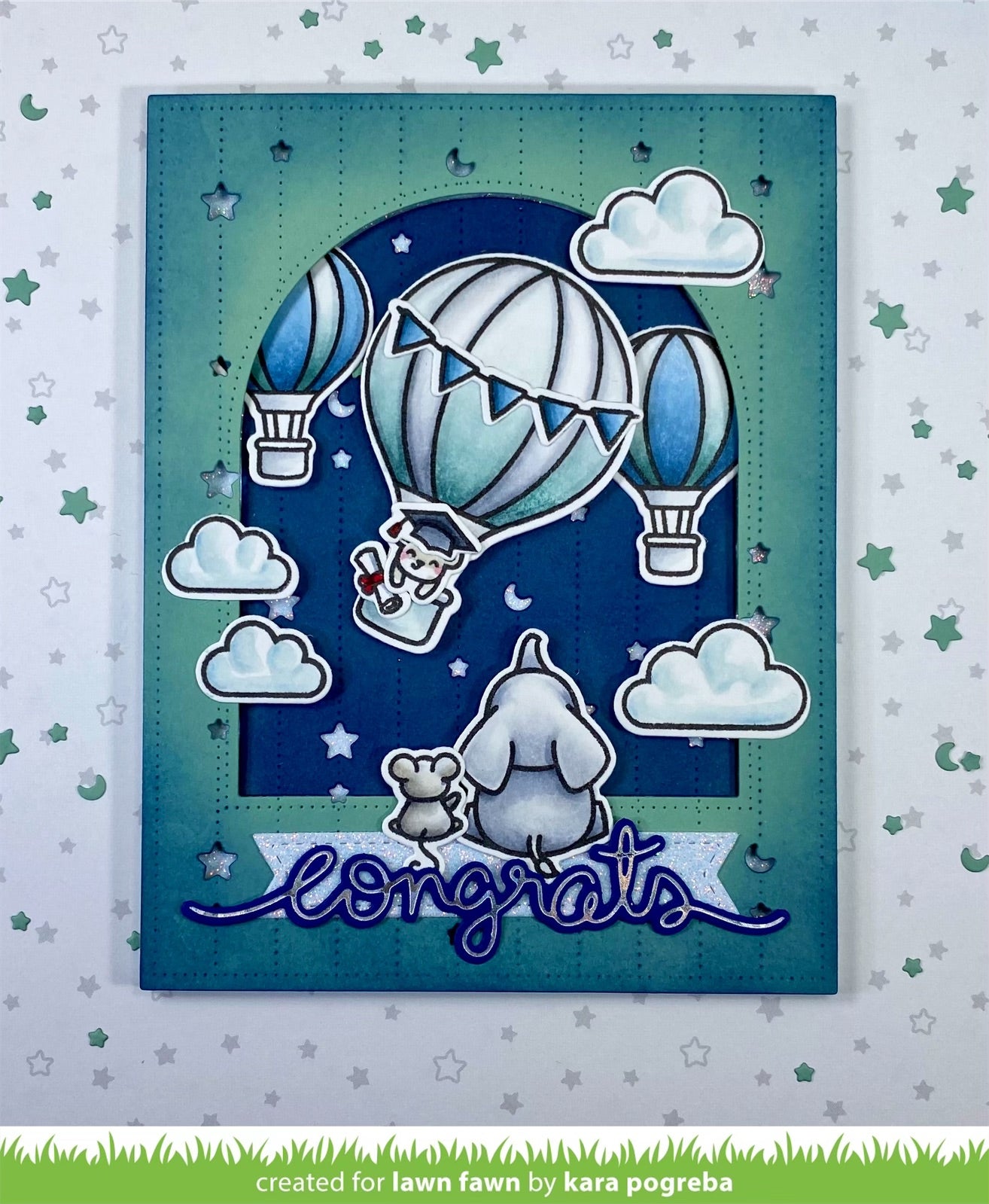 Coordinating set ideas: Pair this backdrop with Secret Garden Window, Fly High, and Big Scripty Words Hot Foil Plates for a super sweet congratulations card!