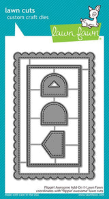 This add-on to Flippin’ Awesome creates a scalloped decorative base for Flippin’ Awesome. It also includes a stitched decorative panel that reveals itself as you pull the tab. Plus, some extra styles of pull-tab!