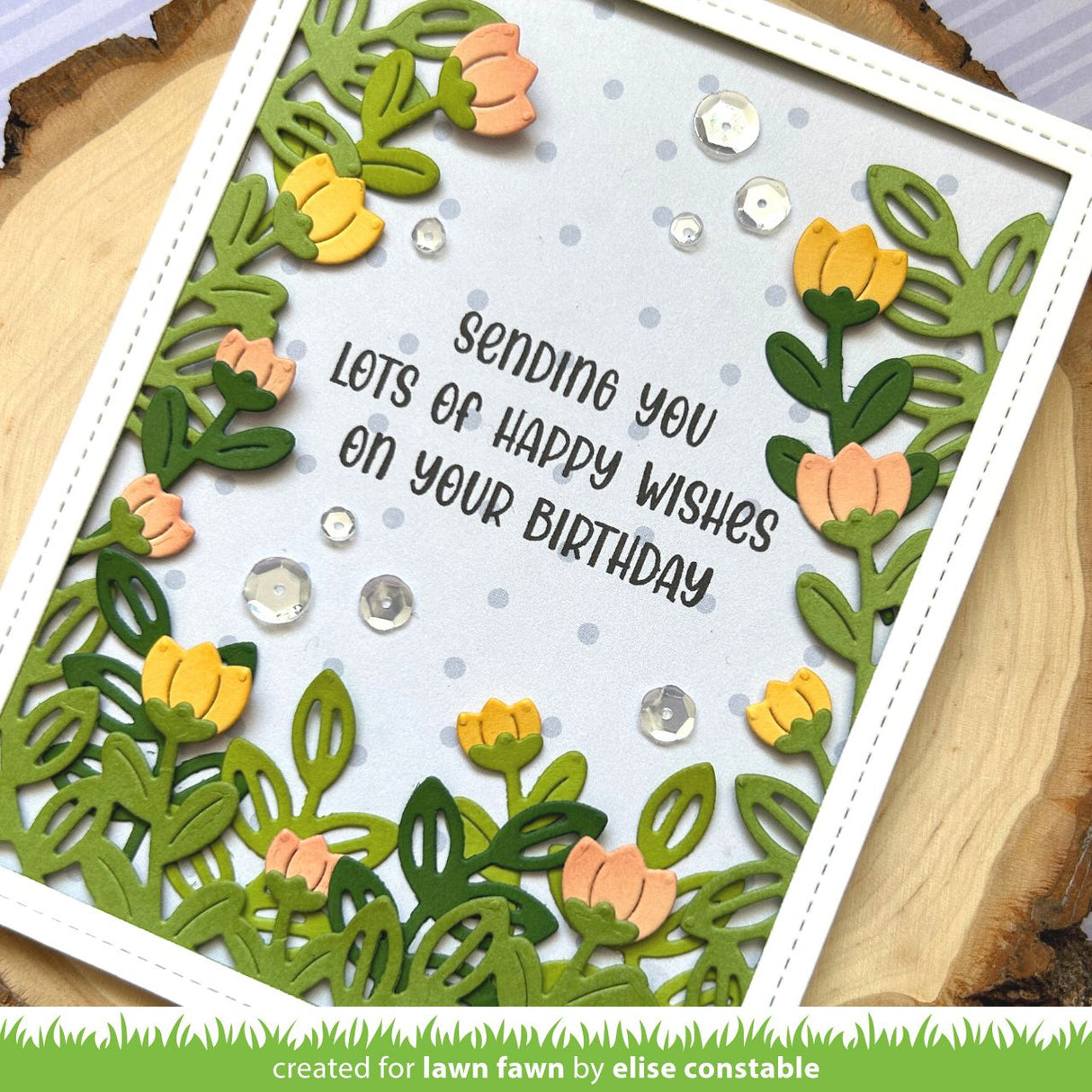 Create a lush flower garden backdrop for your cards! Decorate with the included flower stems, flower tops, butterfly, and leaves.