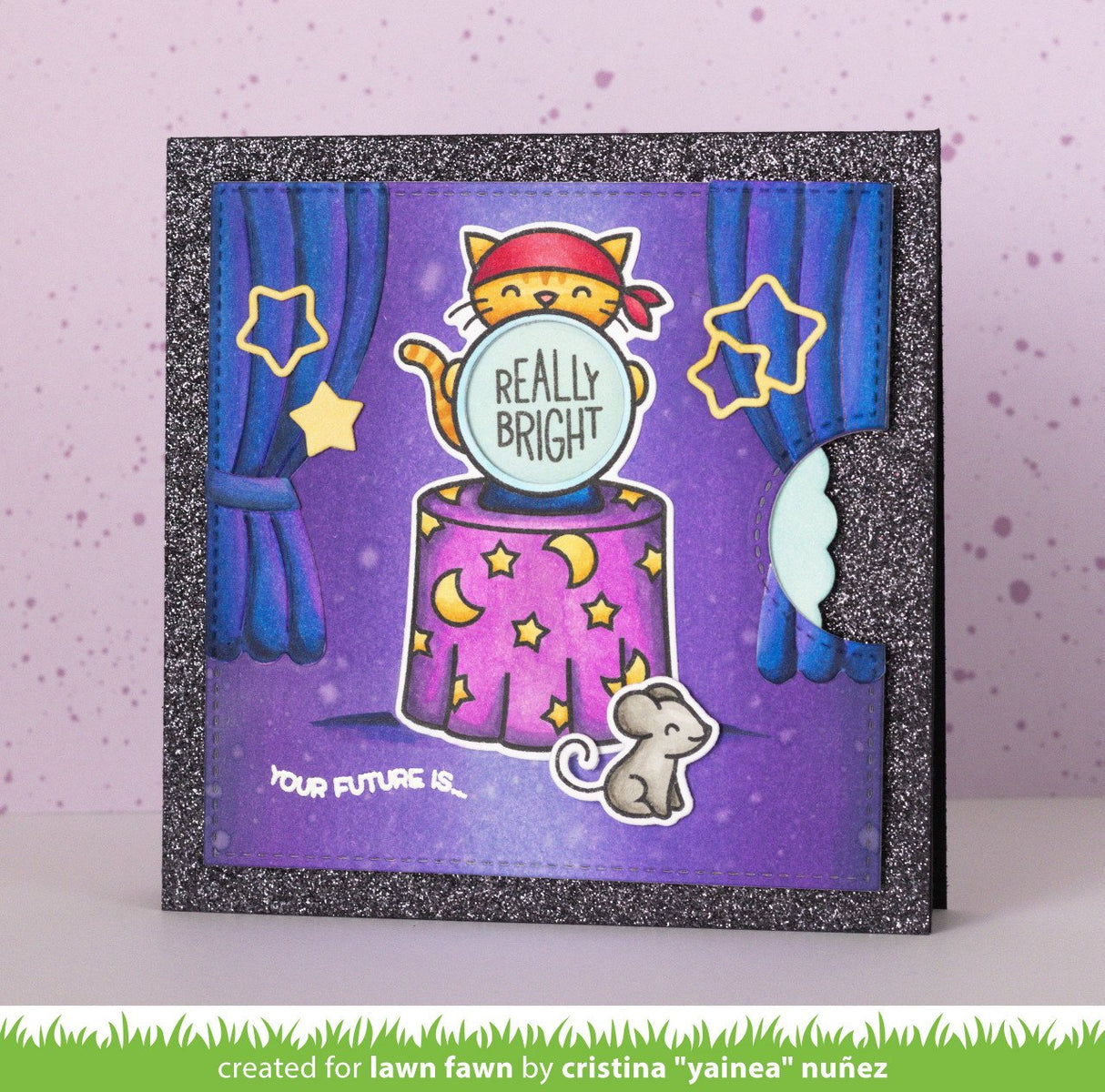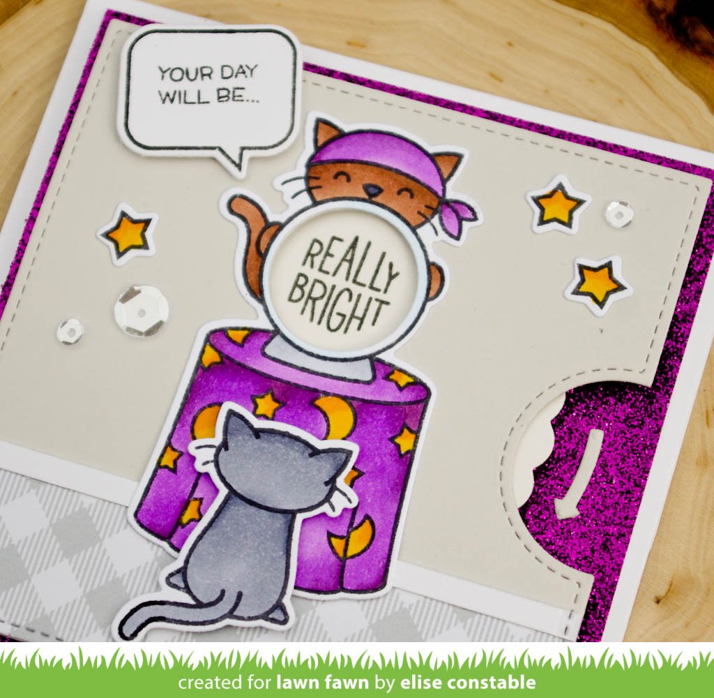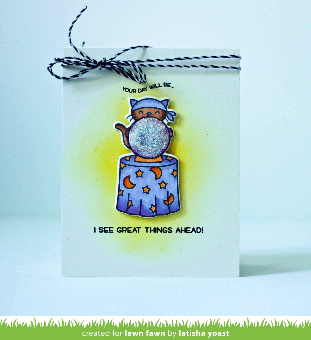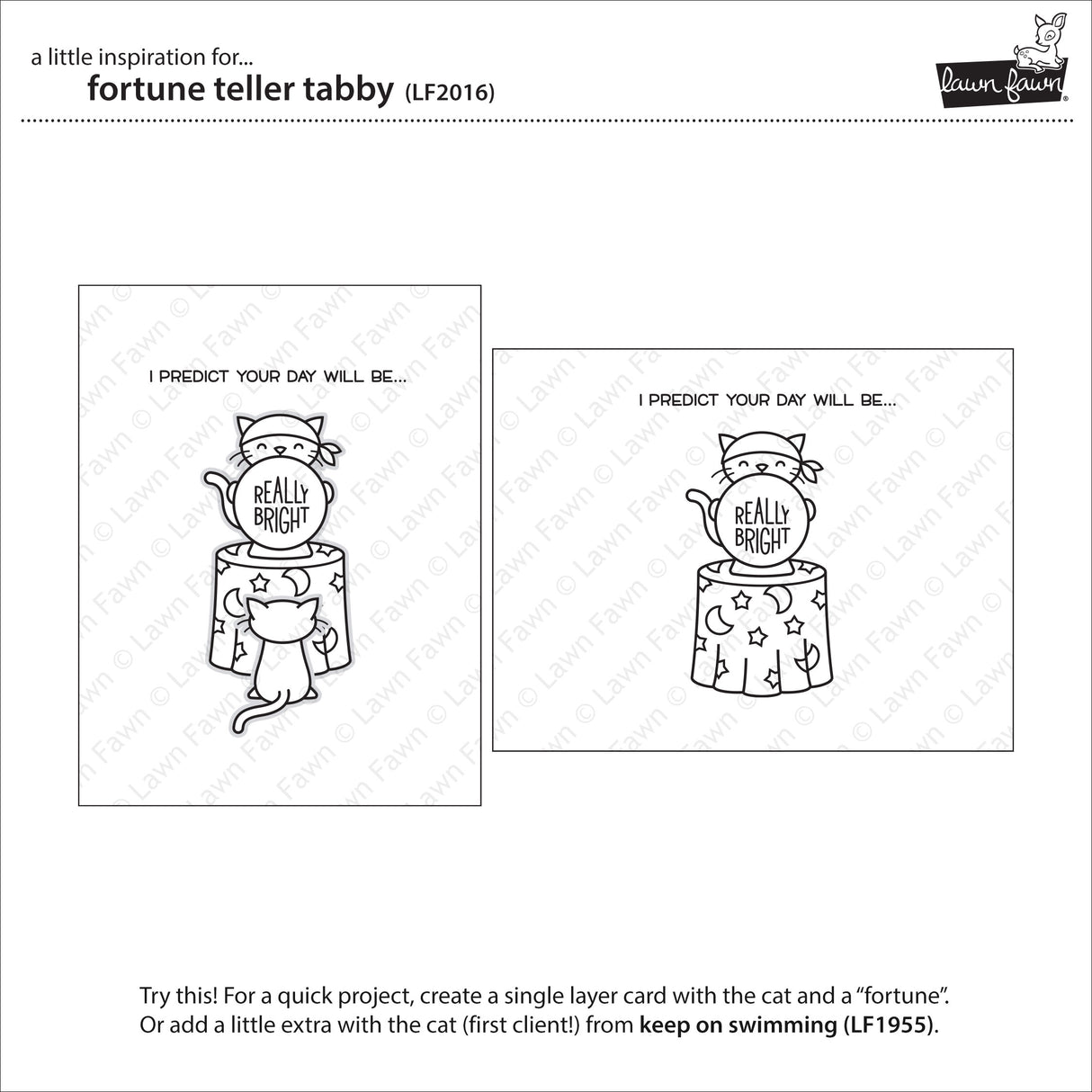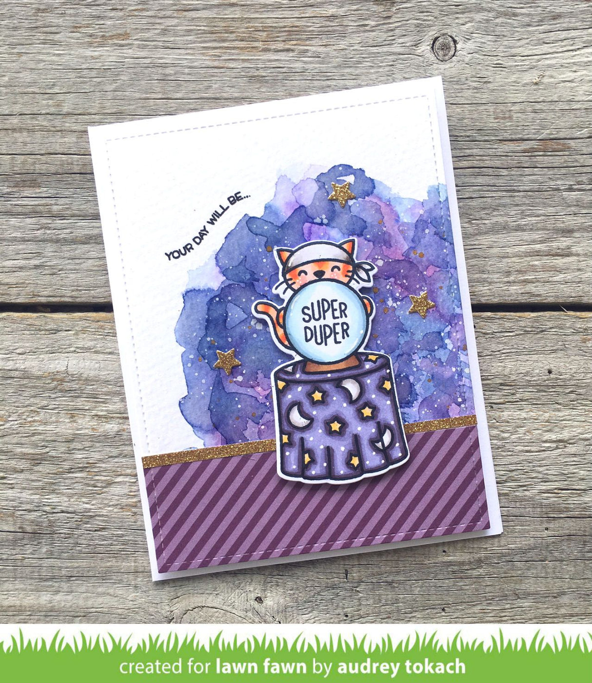I predict that you will love this stamp set! This cute fortune teller tabby cat is great for cat lovers, or anyone who needs a pawsitive prediction!
