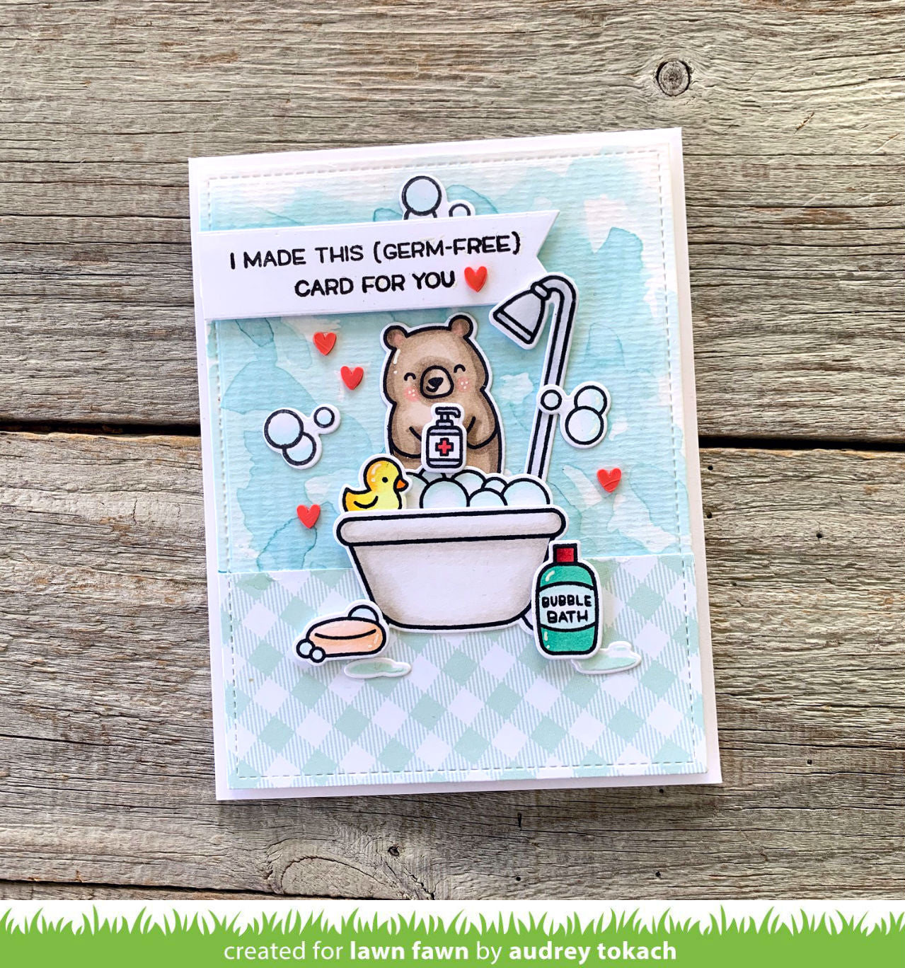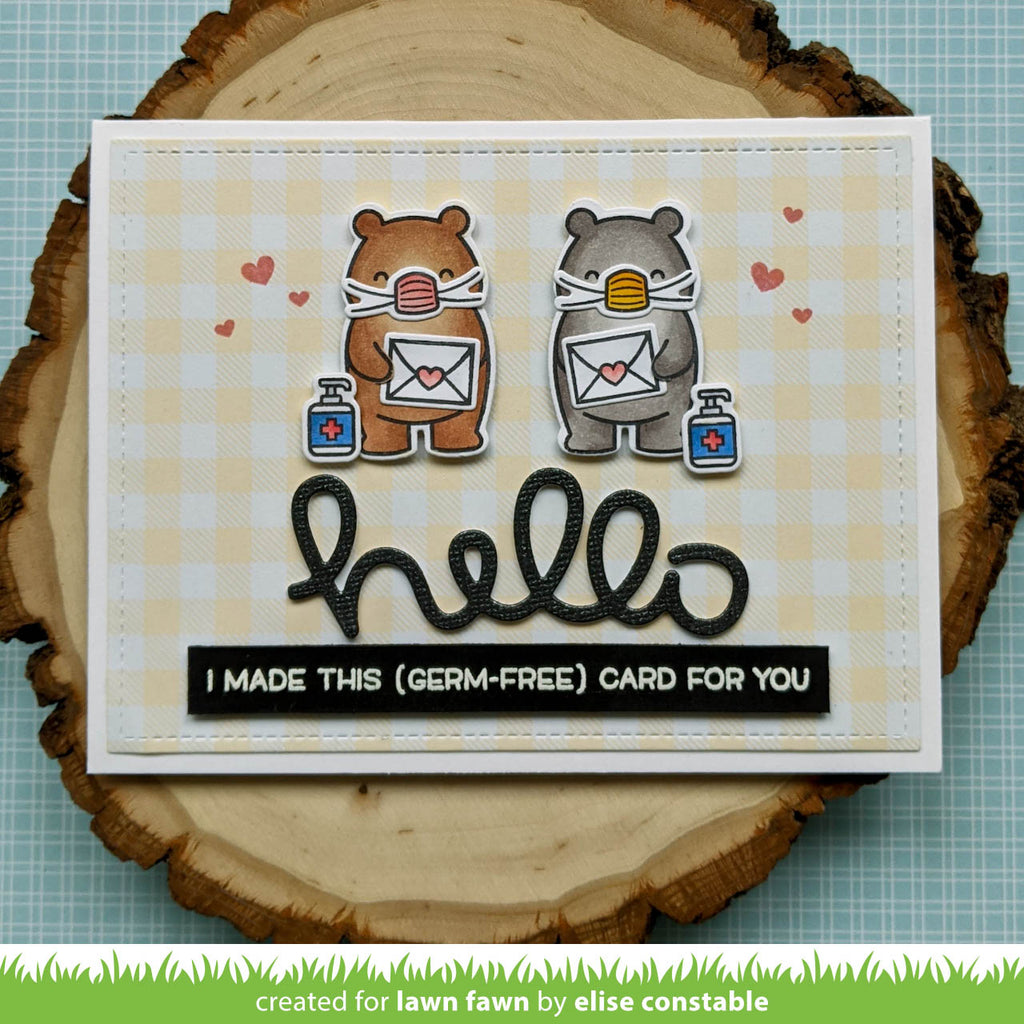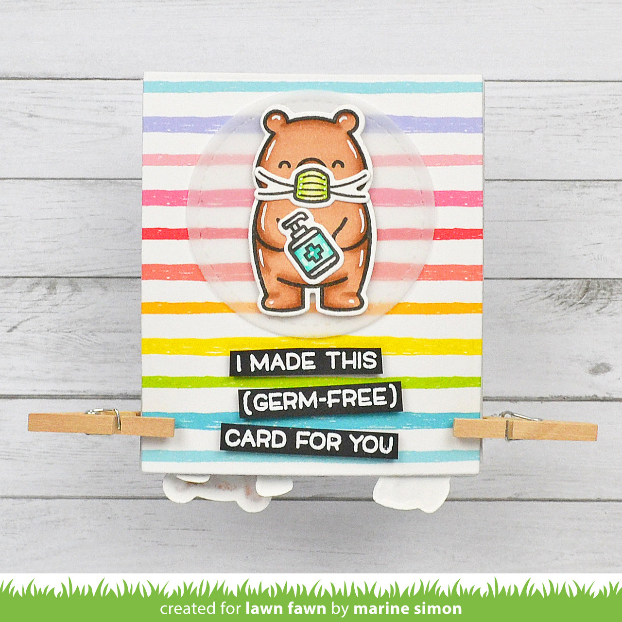 Keep those cards (and hands) germ-free! This adorable mini bear stamp set comes complete with hand sanitizer (or soap) and mask.