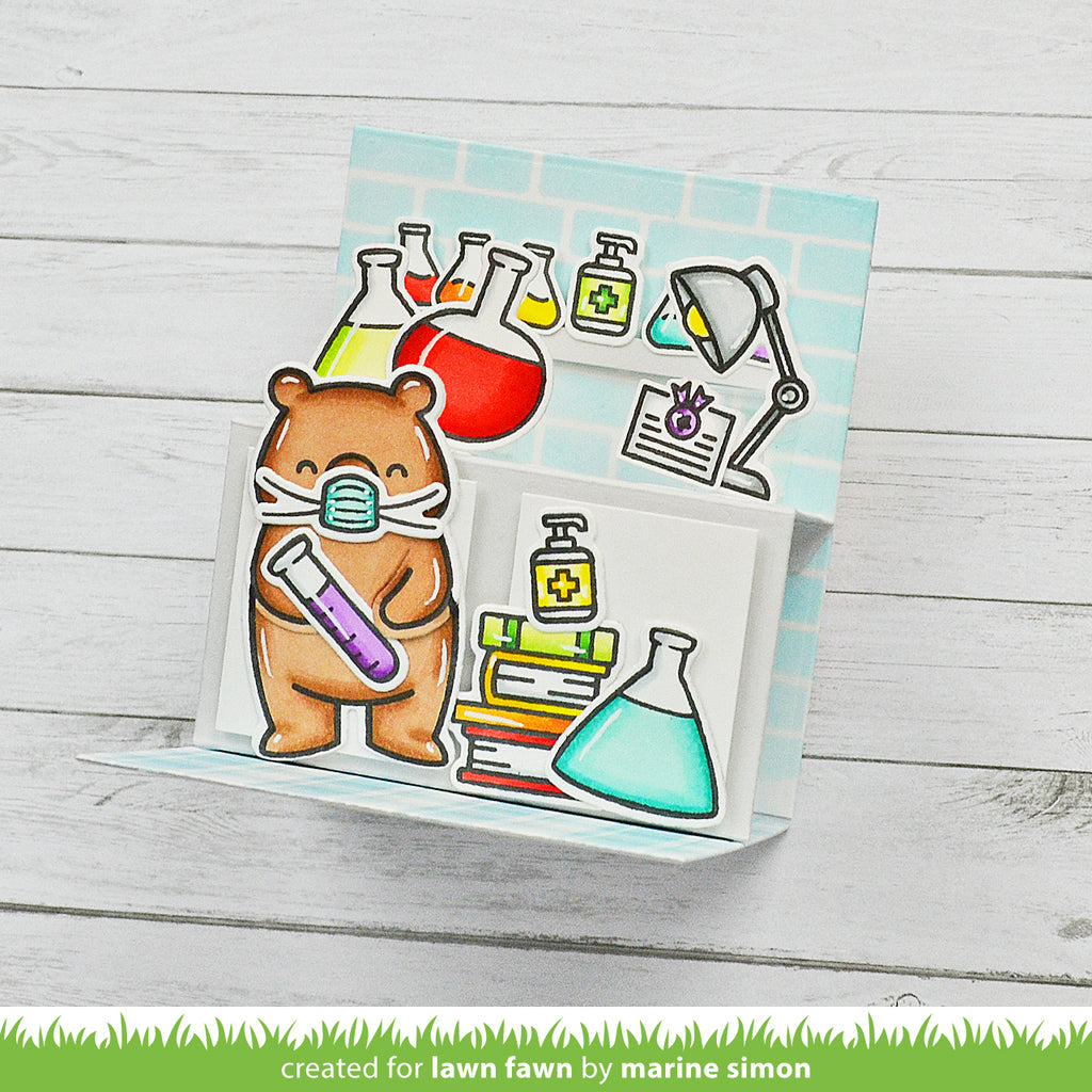 Coordinating set ideas: Pair this set with Science of Love for lab accessories. Add the bathtub and bubbles from Rub-A-Dub-Dub for a very clean bear. Need a bigger bear family? Use Den Sweet Den and Snow Much Fun! More masked friends? Check out Say What? Masked Critters.