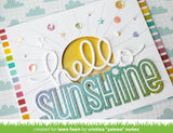 Send someone lots of sunshine-y greetings to brighten their day! This giant sentiment fits a standard sized card for quick cards with lots of pizazz!