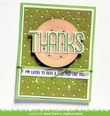 Send a friend or loved one lots of gratitude to brighten their day! This giant sentiment fits a standard sized card for quick cards with lots of pizazz! This set comes with two layers to help quickly create a two-toned look!