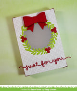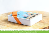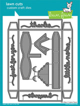 Create a gift box that is sure to make anyone smile! This set includes everything you need to build the base of a box, a cute lid with scalloped corners, and a closure band with a bow. It also contains four scripts sentiments to decorate the lid.