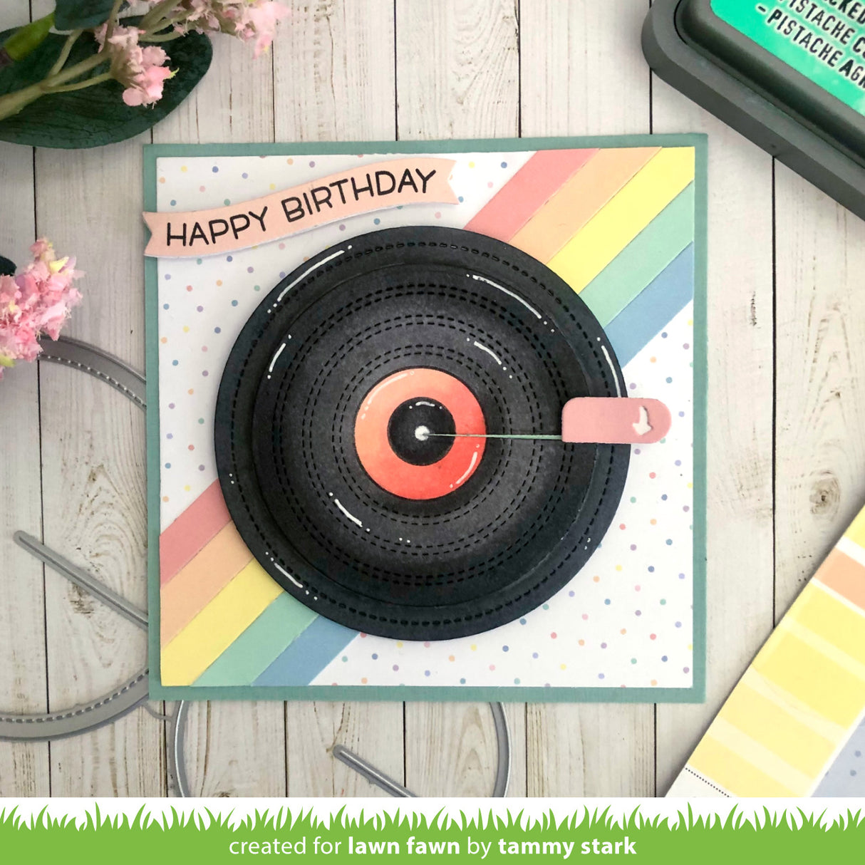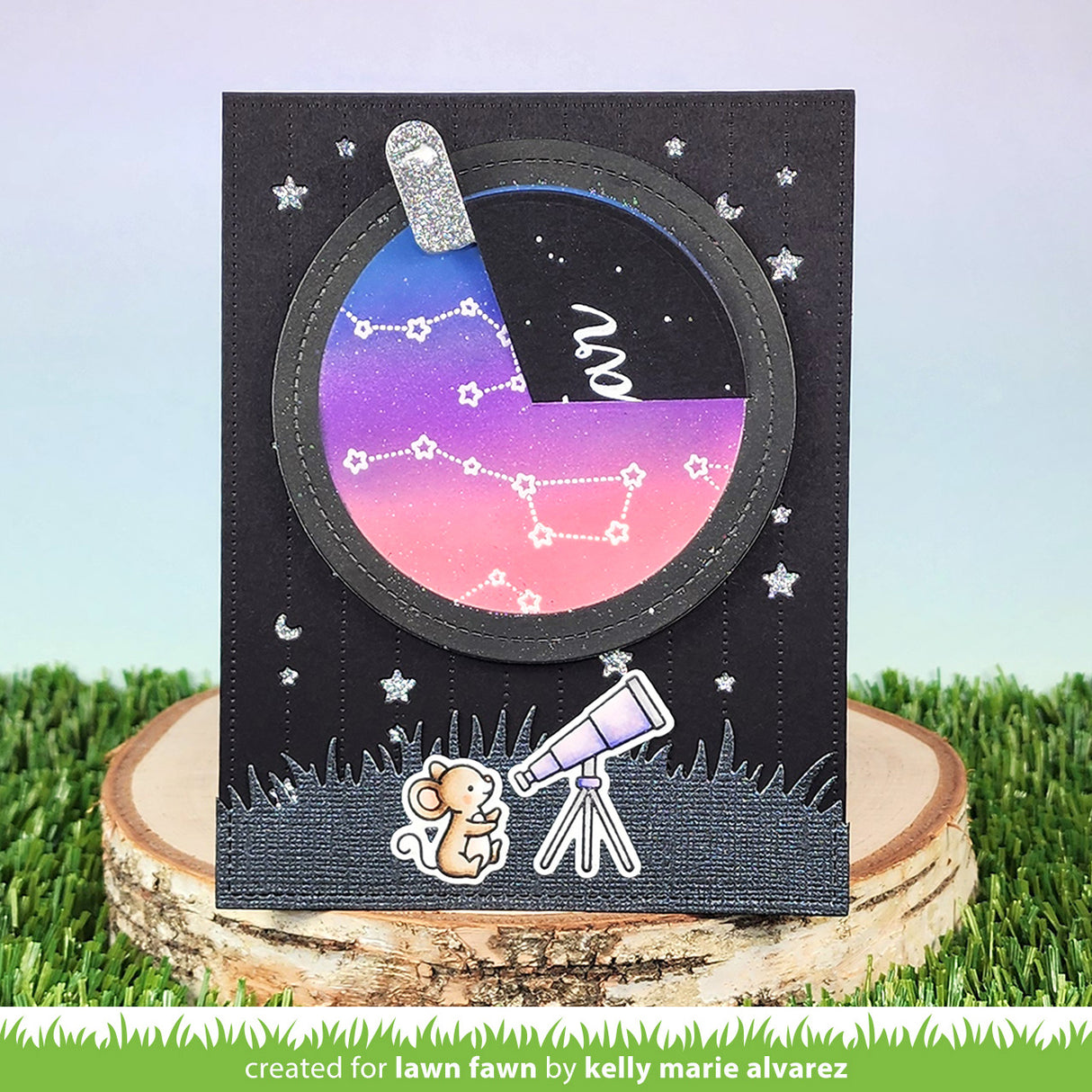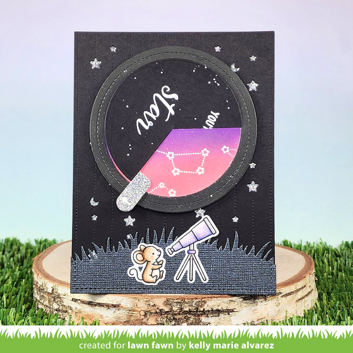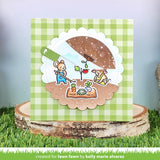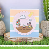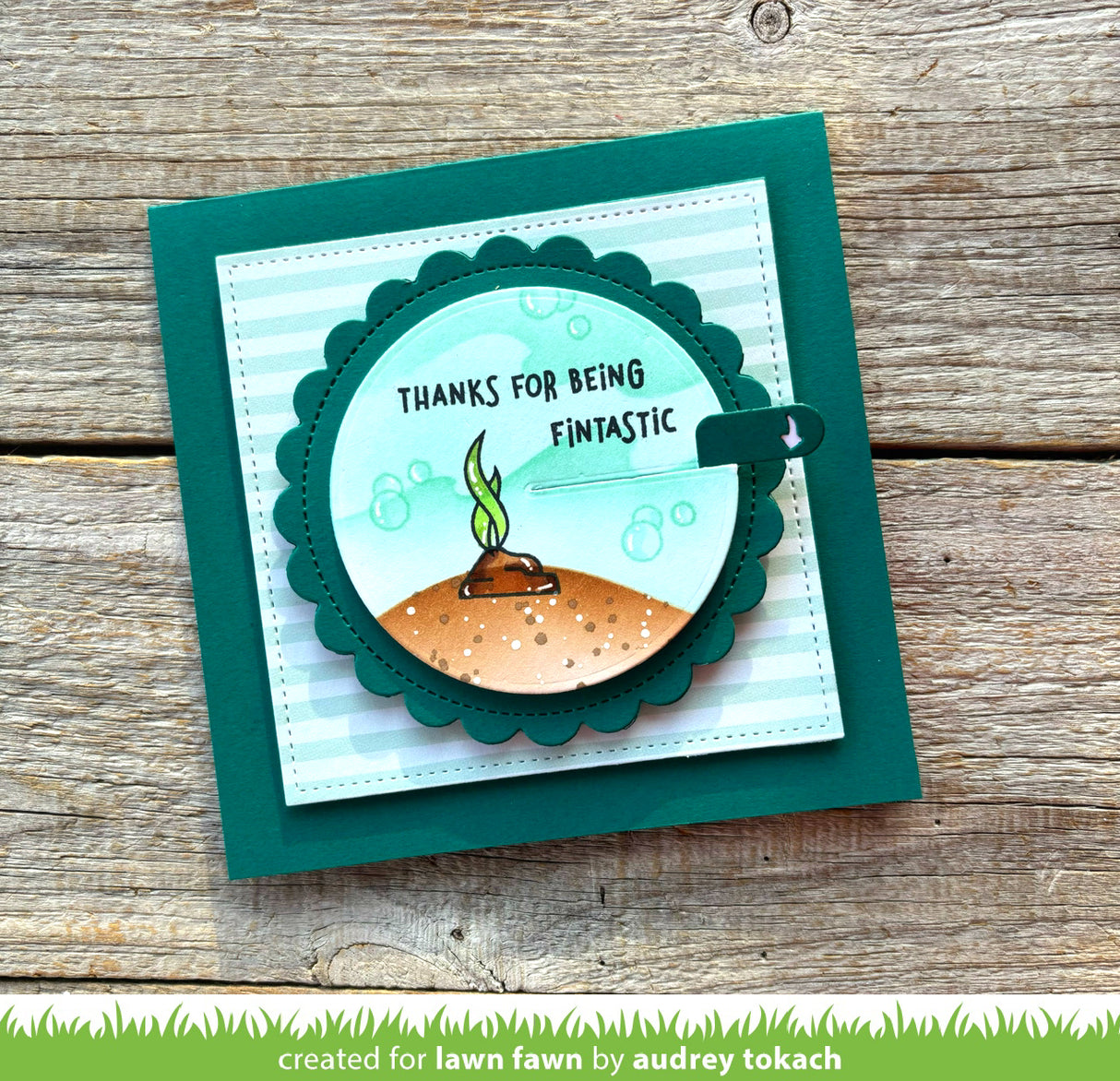 We are whirling with excitement over this new interactive set! Rotate the tab around the circle to reveal a new scene underneath! Combine it with your favorite critters or sentiments for infinite creative possibilities. Add a super fun scalloped base with Give It a Whirl Scalloped Add-On. Take the guesswork out of your design placement with the handy Give It a Whirl Template.