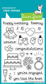 Wish someone you love a happy wedding with this collection of 25 clear stamps. This set features cute love birds, a wedding cake, engagement ring, bouquet of flowers, wedding bells, and a knot tied in the shape of a heart.
