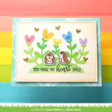 Ink a garden that’s full of love and color! This stencil has all the markings to make it easy to match up your heart shaped flower tops with their leafy stems. Layer these flowers on the included garden bed too! This stencil works well with a variety of crafty techniques!