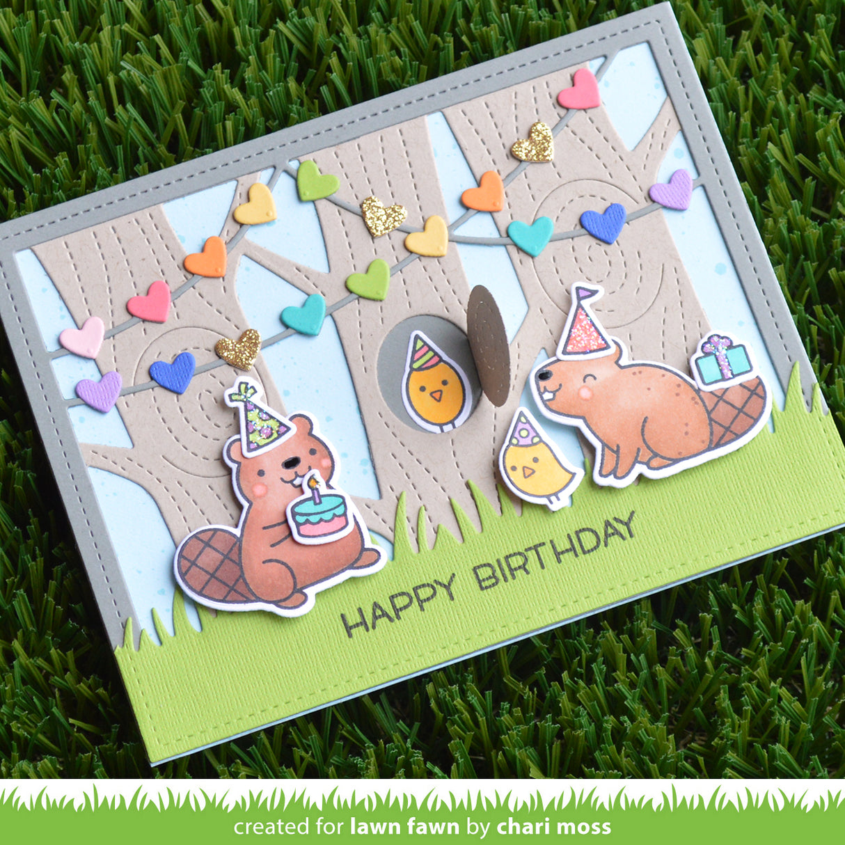Coordinating set ideas: This backdrop will help set the scene for the beavers in Wood You Be Mine? and So Dam Much. Pair it with Heart Garden Border to complete your heart filled card!