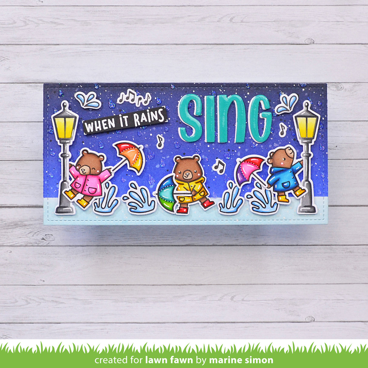 Coordinating set ideas: This set perfectly pairs with Beary Rainy Day! Rainy Sky Stencil, Rainy Backdrop: Portrait, or Rainy Backdrop: Landscape would make a perfect backdrop for your rainy day scene. Create some bright and happy rainbows with the Corner Rainbow Stencils and your favorite stencil mediums.