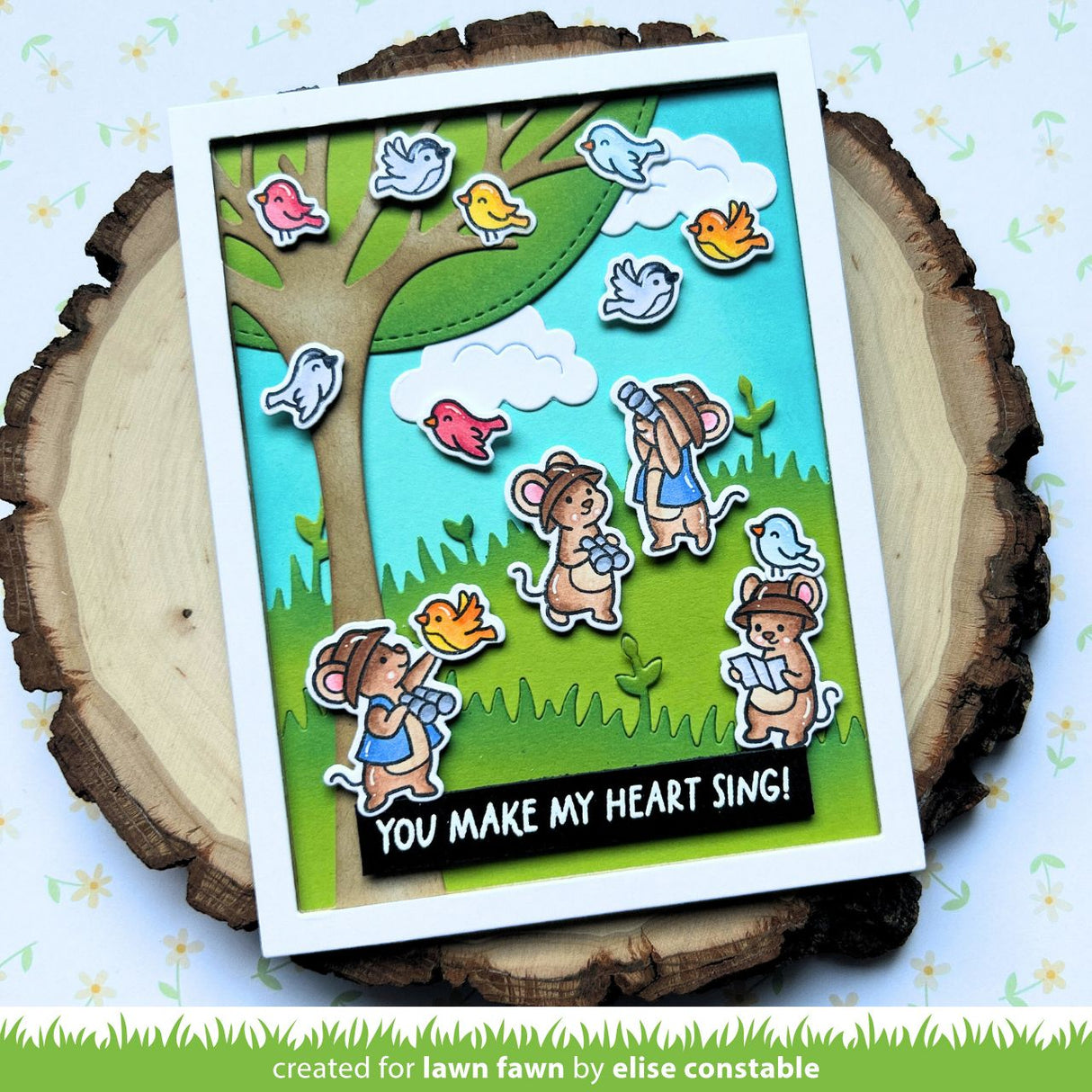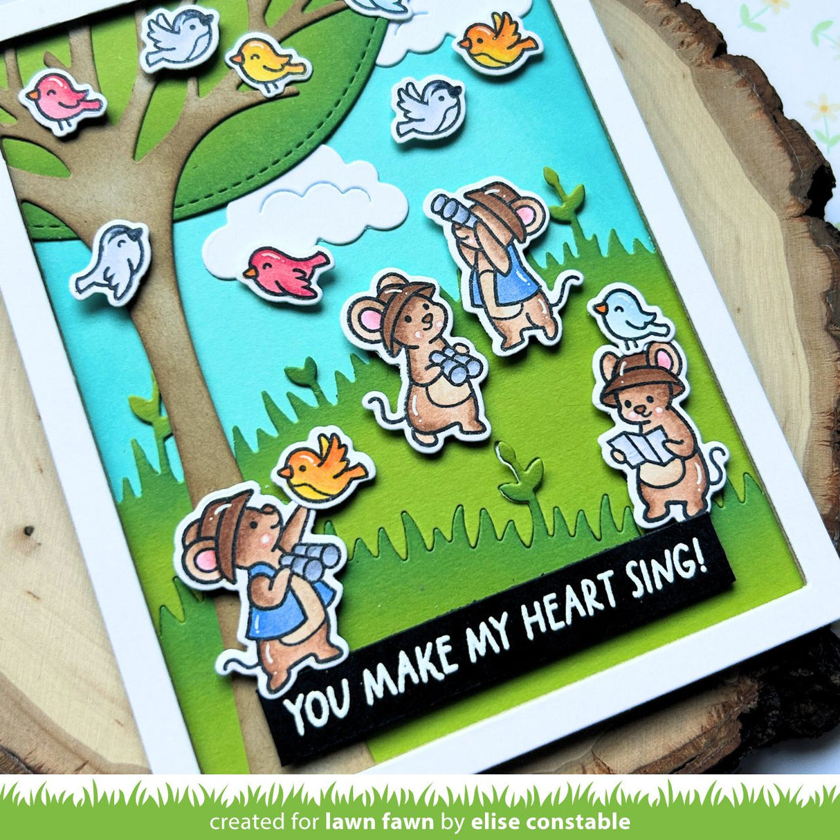 Look to the skies and join these cute mice on a birdwatching adventure! With their trusty binoculars they’ll spot their feathered friends in no time! The set is great for creating springtime, friendship, or just-because cards that will make anyone chirp with joy!