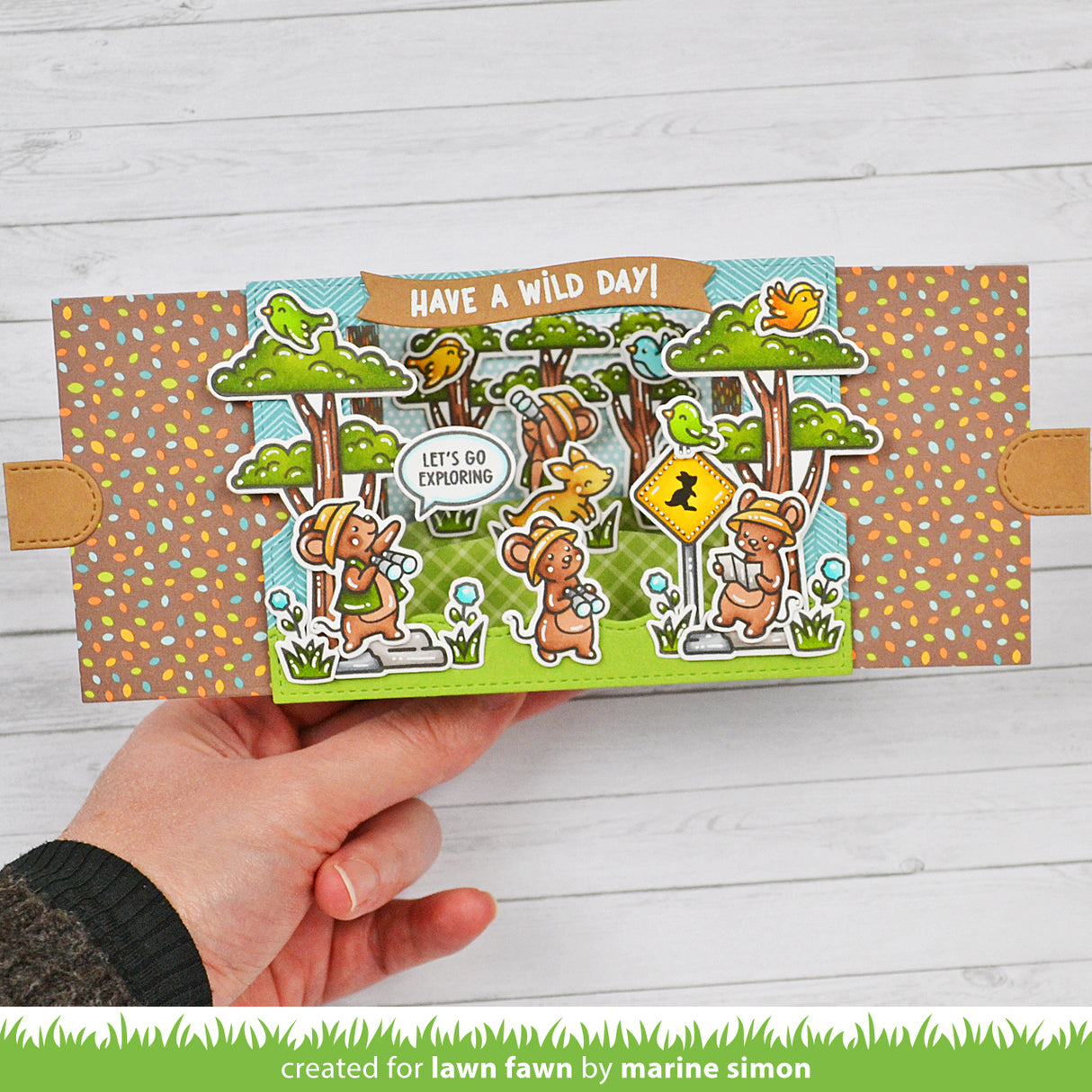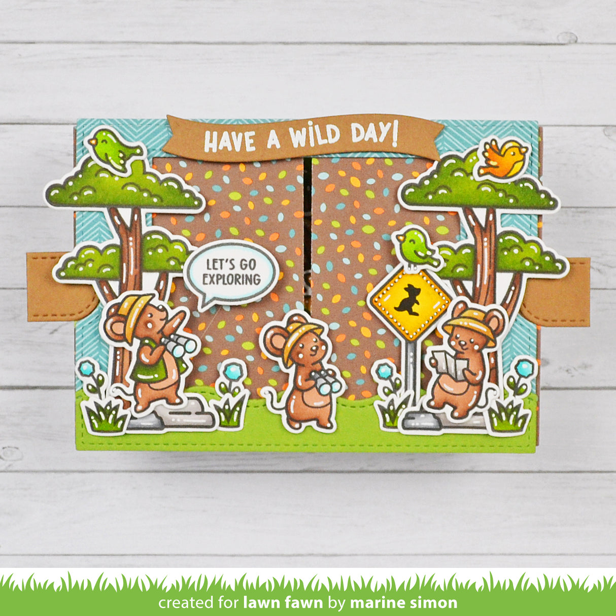 Coordinating set ideas: Perch these cute birds on Heart Tree for sweet scene. Leafy Tree Backdrop: Portrait or Leafy Tree Backdrop: Landscape would be an amazing die cut tree backdrop. These fun mice are great explorers and would be super cute in any scene with your favorite critters! For example, go on a jungle safari with Critters in the Jungle!