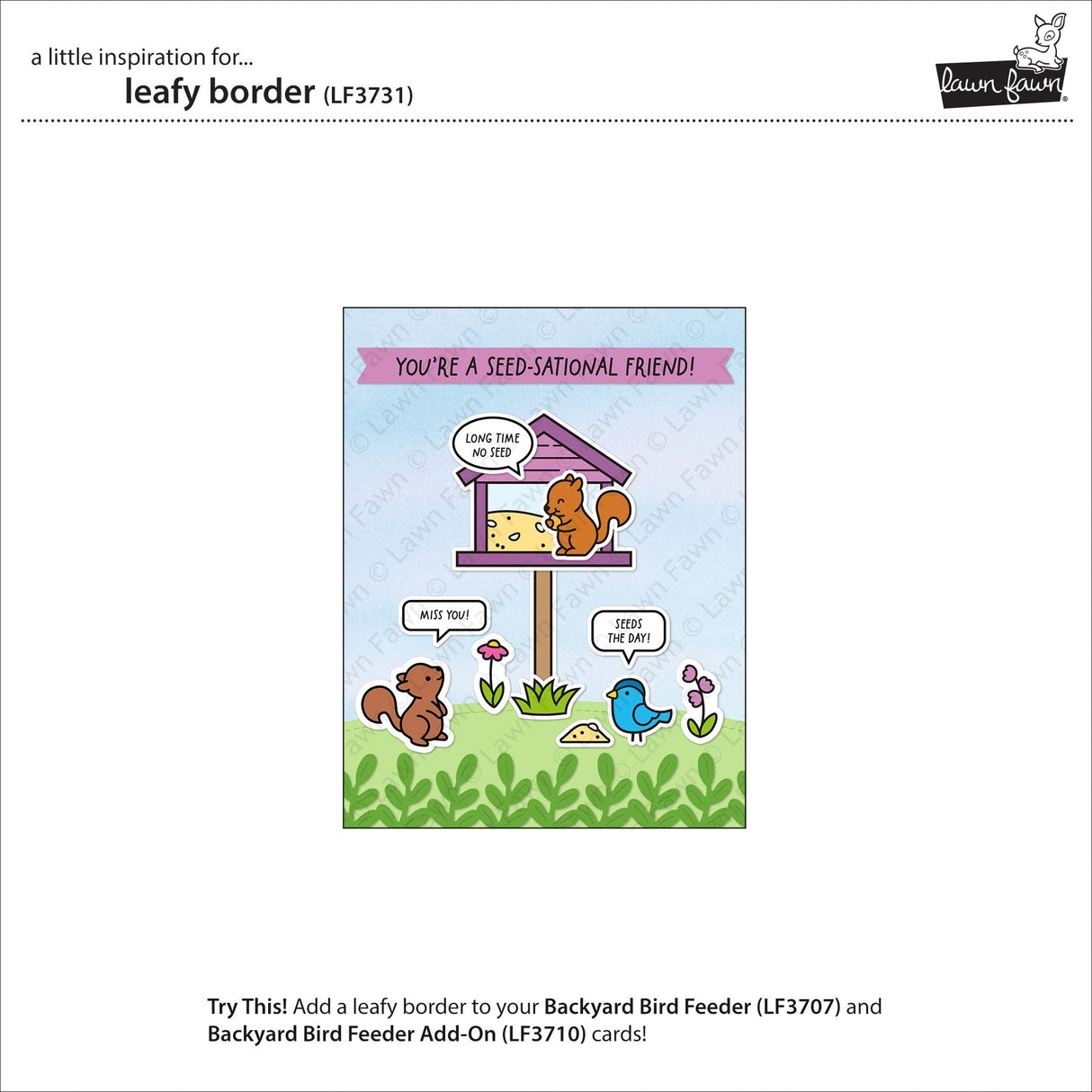 Coordinating set ideas: Add this border to your backyard scenes using Backyard Bird Feeder and Backyard Bird Feeder Add-On to create a lush garden look. Make adhering your border a breeze by applying Double Sided Adhesive Sheets to your cardstock or patterned paper before cutting your Leafy Border.