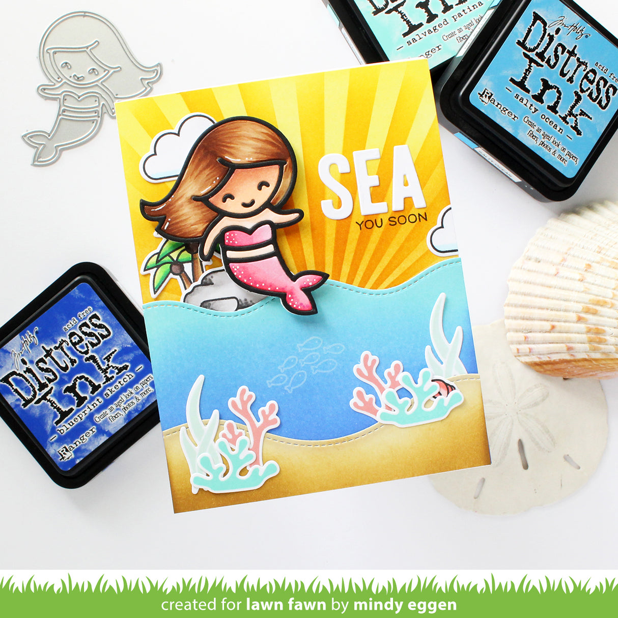 For all our ocean-themed projects, we have created a paper-piecing die set with your favorite mermaid! Piece together a pretty mermaid using colorful cardstock and patterned papers. Then use sentiments from Mermaid for You for a perfect greeting!
