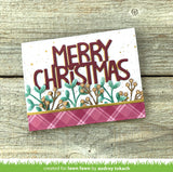 Coordinating set ideas: Create a clean and simple holiday card using a Stitched Snowflake Backdrop, Winter Big Scripty Words, and an adorable bundle of Merry Mistletoe in your favorite cardstock colors.