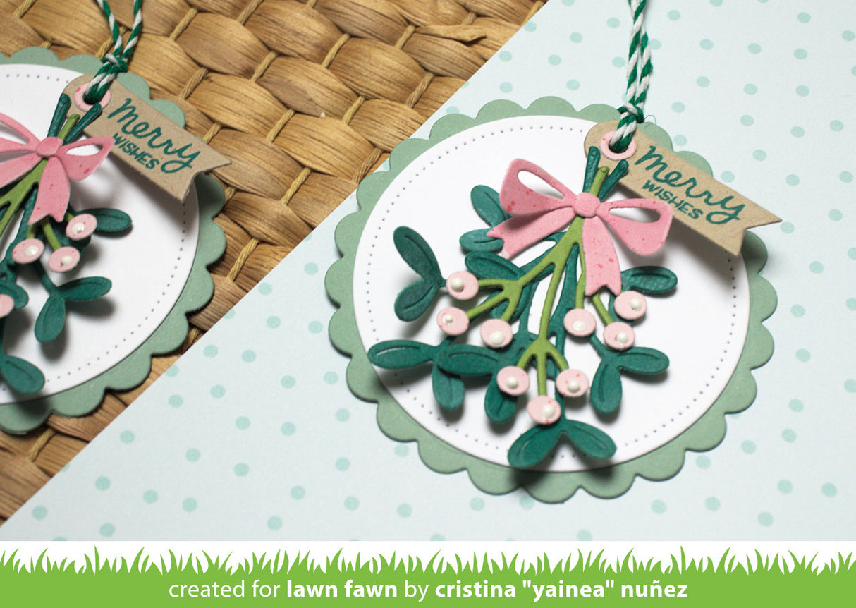 Use this die set to create holiday cards showing you love them from head to mistletoe! Layer the leaves and berries in different colors of cardstock and finish the bundle with an adorable festive bow!