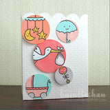 Have a bundle of joy on the way? Create invitations, announcements, baby shower cards, and more with this cute set of 25 clear stamps.