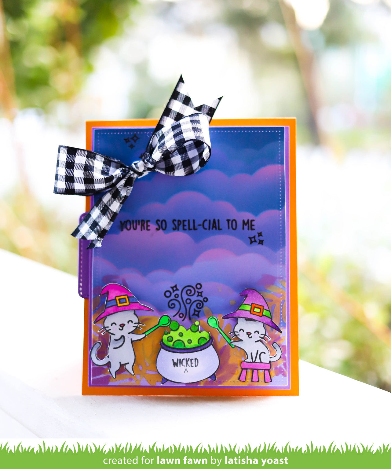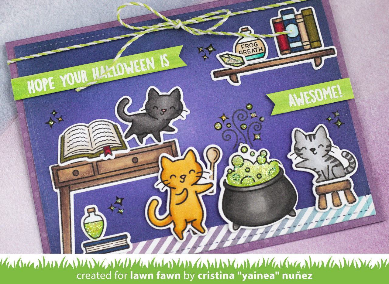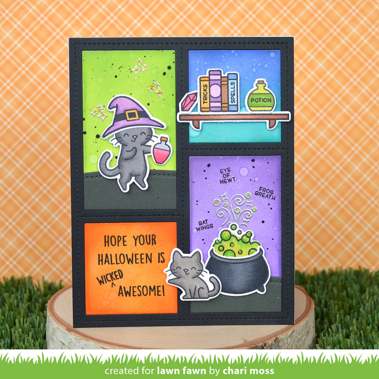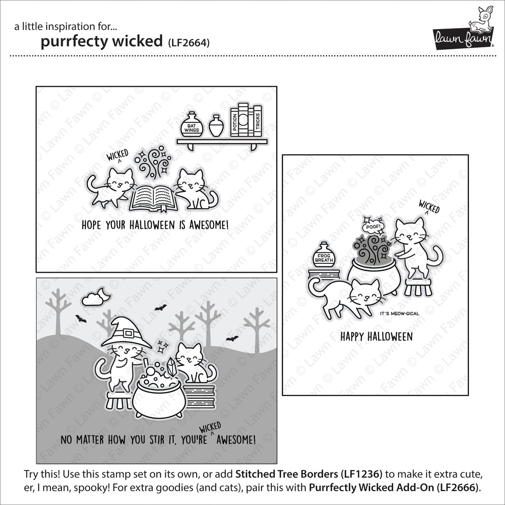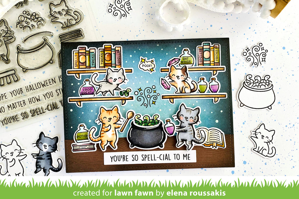 Coordinating set ideas: Add more to the brew using Purrfectly Wicked Add-On! Make an interactive card with Magic Picture Changer, showing the potion changing into candy! Create a scene using Stitched Tree Borders or Spooky Fence Border. Use Cute Cobweb to set the scene for spooky fun!