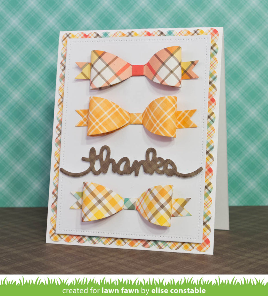 The versatile bow tails be adhered placed straight, or you can fold along the emboss line to create "V" shaped tails.