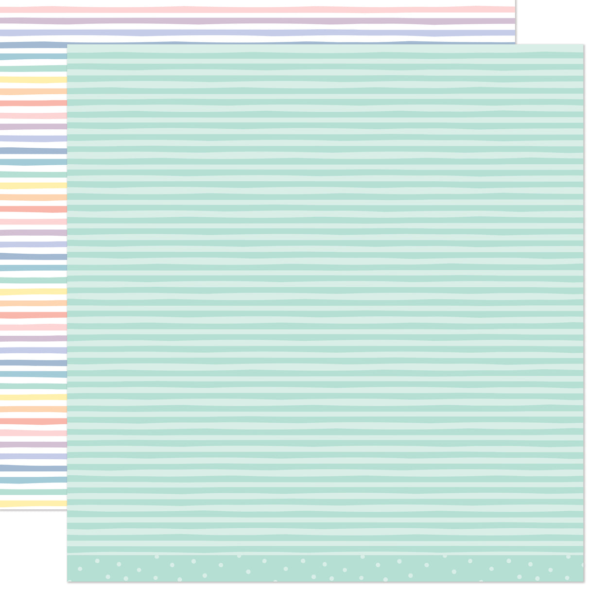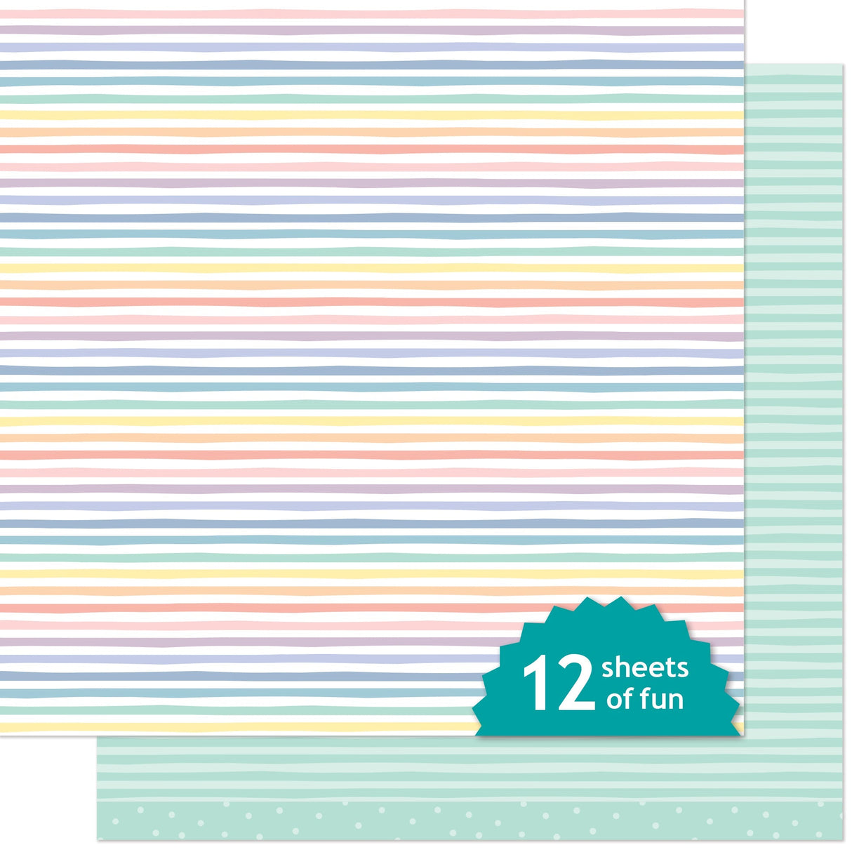 This paper is part of Rainbow Ever After, a collection of complementary patterns featuring a lovely pastel rainbow palette. This collection is a great backdrop for your cards and scrapbook layouts.