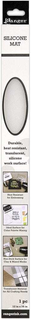 This silicone mat is a durable, heat resistant surface great for all craft and mixed media needs. The clear silicone is ideal for placing over a white surface to create a mixed media palette where wet mediums can easily be mixed together, making colors easily visible. It resists slipping on any surface, and the smooth finish prevents texture from transfering onto any projects.