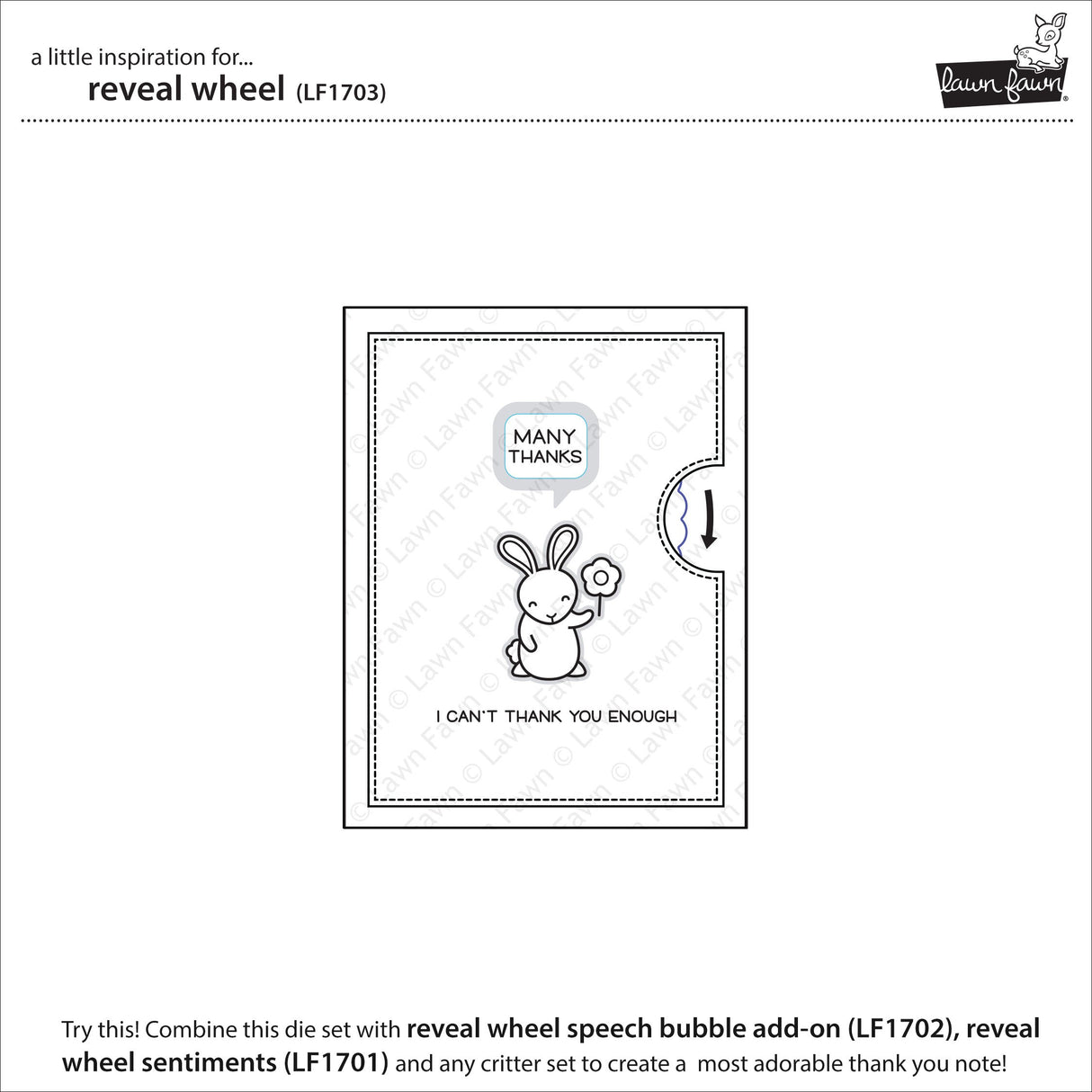 This set includes everything you need to create a cool interactive card! Spin the wheel to reveal different sentiments, colors, or images through the window. This set works great with Reveal Wheel Sentiments, and also coordinates with Reveal Wheel Speech Bubble Add-On and Reveal Wheel Sweetest Flavor Add-On to create unique interactive cards.