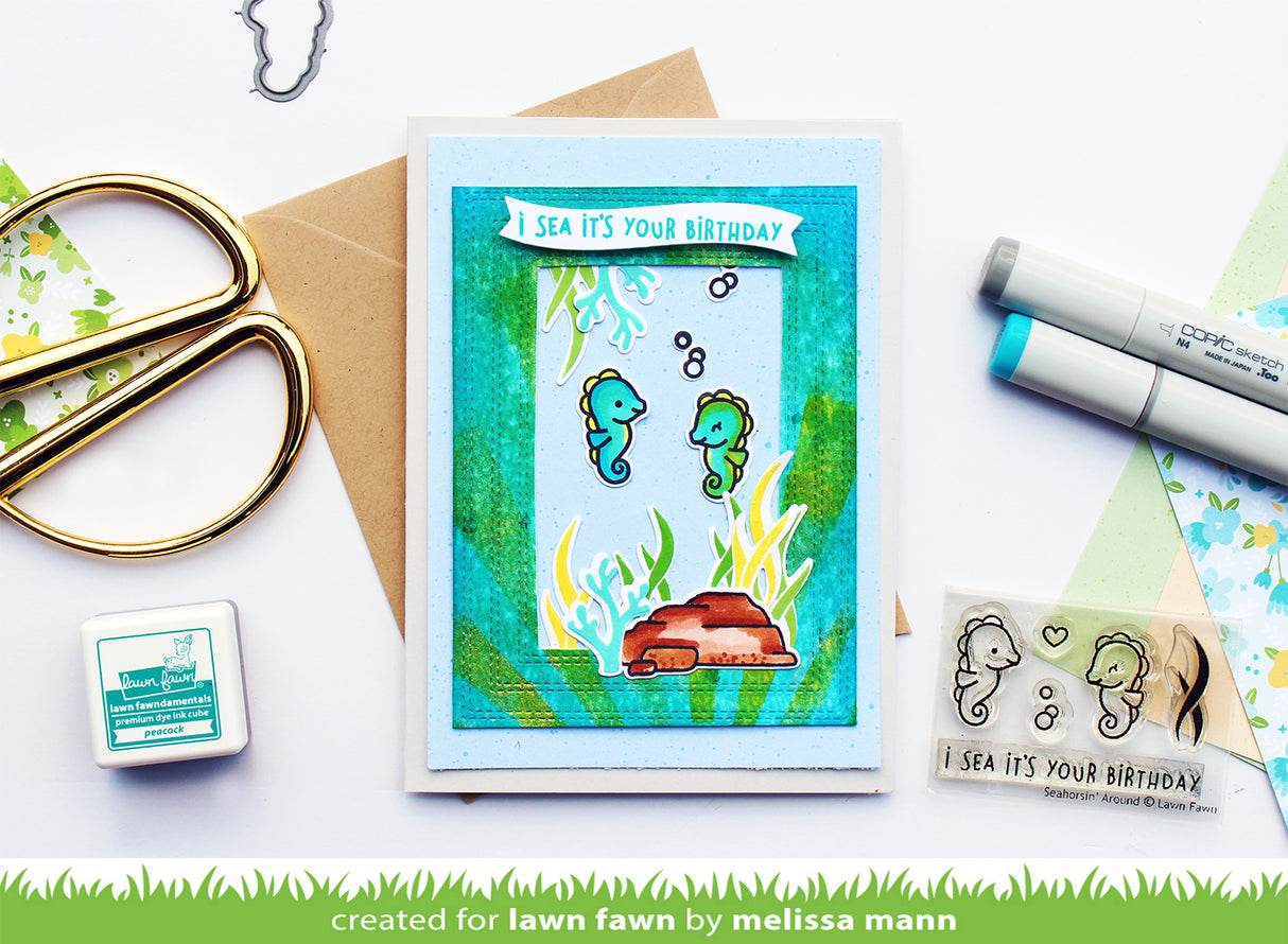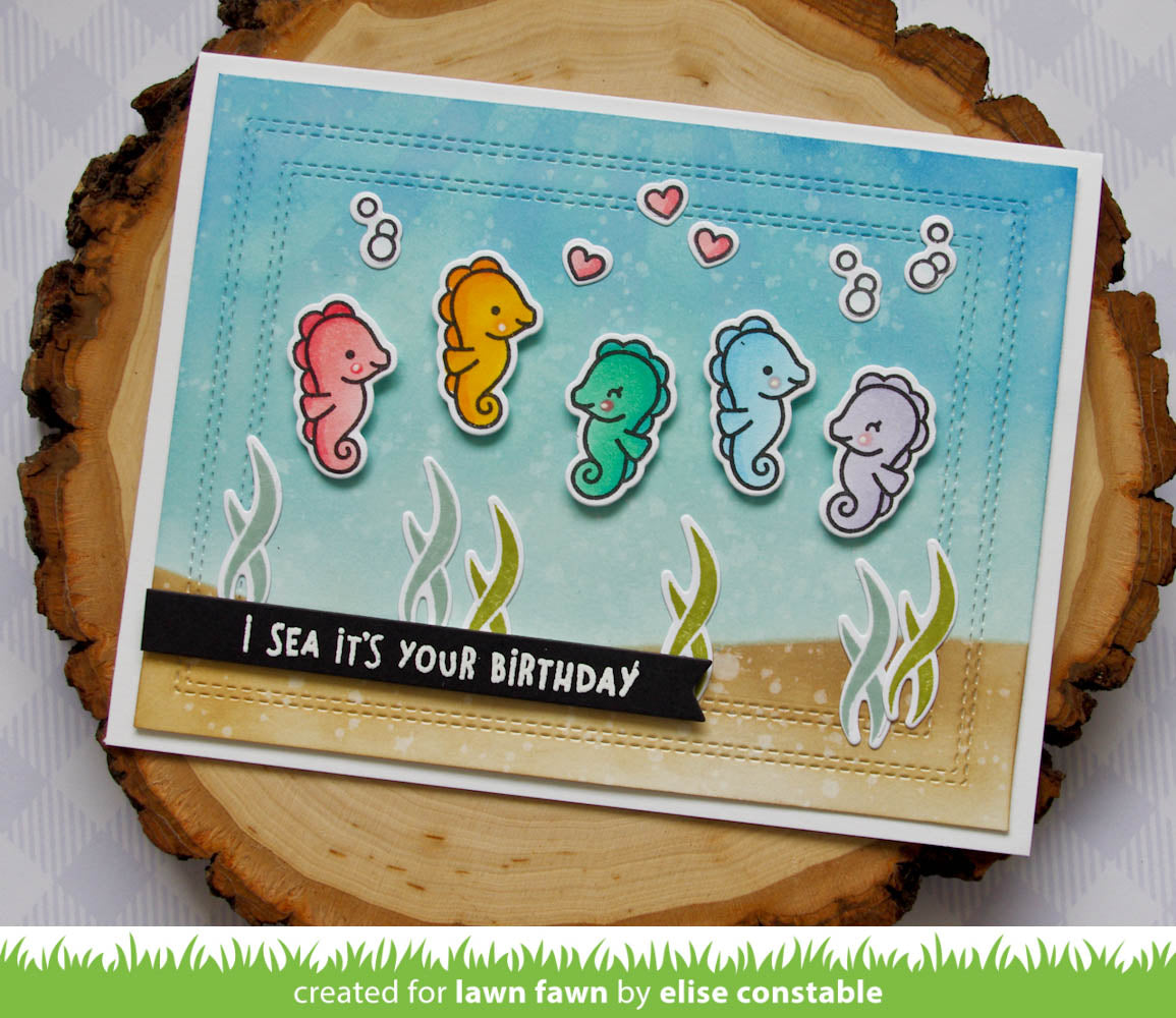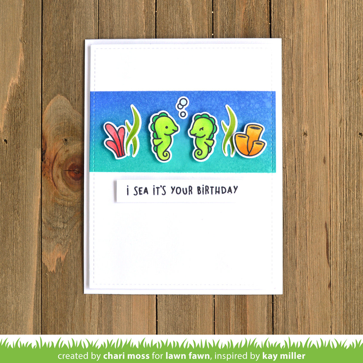 Coordinating set ideas: Use these cute seahorses with Center Picture Window Card to create an impressive underwater scene! Use the “bloop” sentiments from Critter Chatter: Pets to make an adorable card with “talking” seahorses. Use sentiments from Keep on Swimming for other “fintastic” cards. Pair this set with other ocean-themed stamp sets like You are Sublime and Mermaid for You for decorative seaweed, shells, and other accessories.