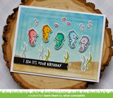 We’re not seahorsin’ around with this fun mini stamp set! This set features two cute seahorses that are ready to celebrate a birthday or other occasion.