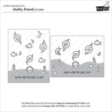 Coordinating set ideas: This set is a fintastic complement to How You Bean? Seashell Add-On, Ocean Shell-fie, and Mermaid for You. Tropical Backdrop would make an amazing beachy scene for your shiny shells! Combine the sentiments from this set with a fun die cut seashell collection using Stitched Seashells and your favorite of cardstock (shiny is super fun) or patterned paper.