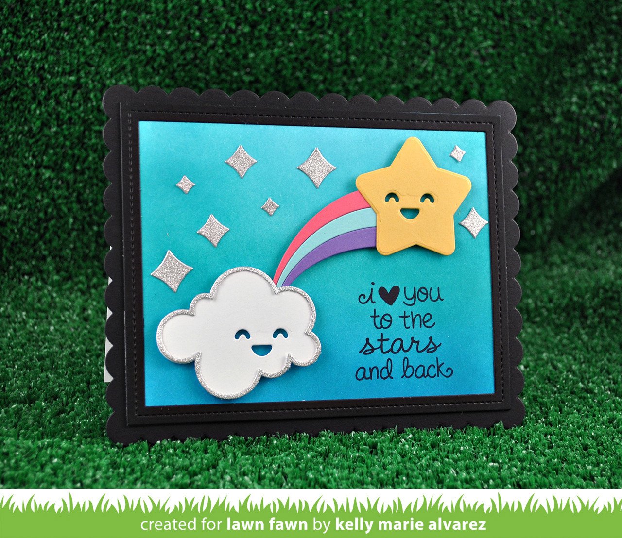 Coordinating set ideas: Combine this set with Make Me Smile to add smiley faces to your stars. Use the moon from Sun and Moon to make a complete nighttime scene, or create a rainbow with clouds from Simple Puffy Clouds for a daytime scene. This set looks great with the "Shine bright" sentiment from Let's Bokeh, or the "You're a Star" sentiment from So Jelly.