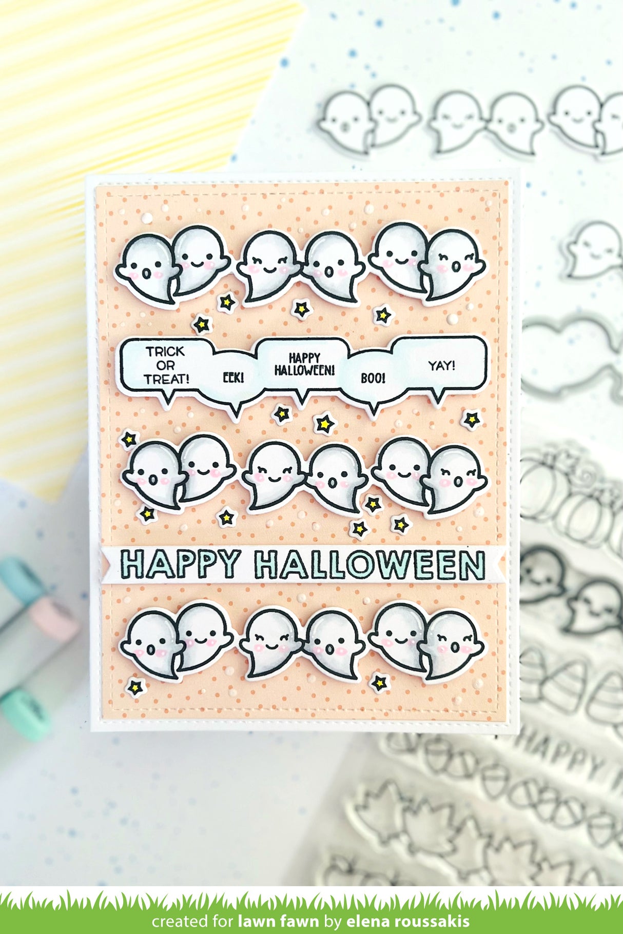 Celebrate Fall and Halloween with this fun set of borders. This set will help you make an easy to create (but cute) greeting! The sentiment is perfect for sending happy fall wishes! For even more sentiments, pair this set with the Simply Fall Sentiments set to help you celebrate all season long!