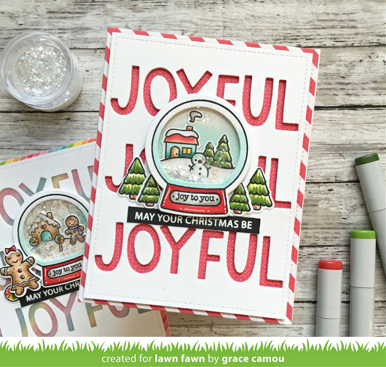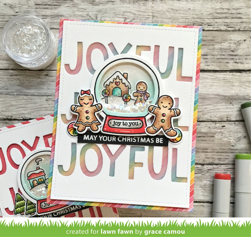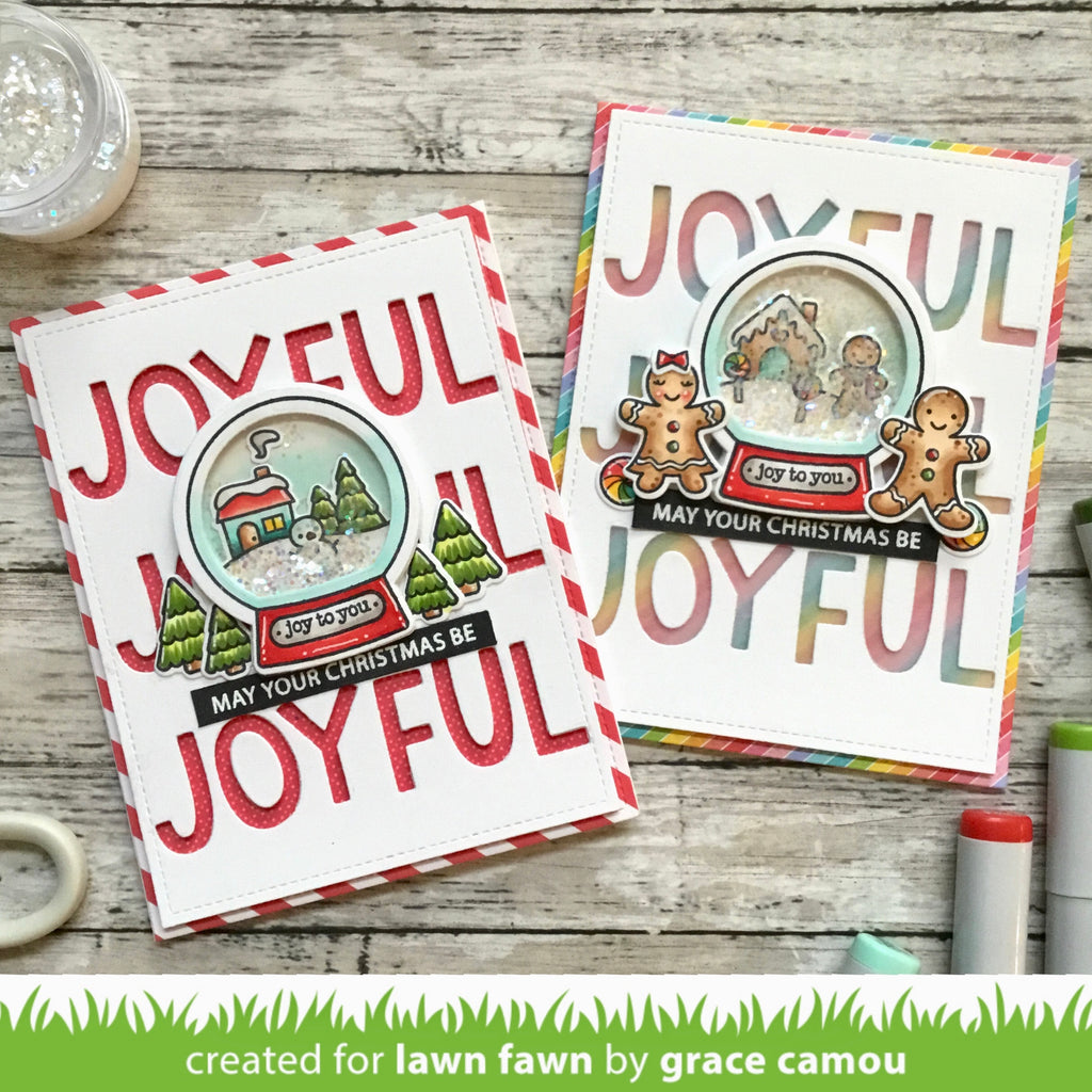 This add-on makes it easy to create a fun shaker card with the coordinating stamp set, Snow Globe Scenes! It includes a base, snow globe frame, and several styles of “confetti” shaker pieces.