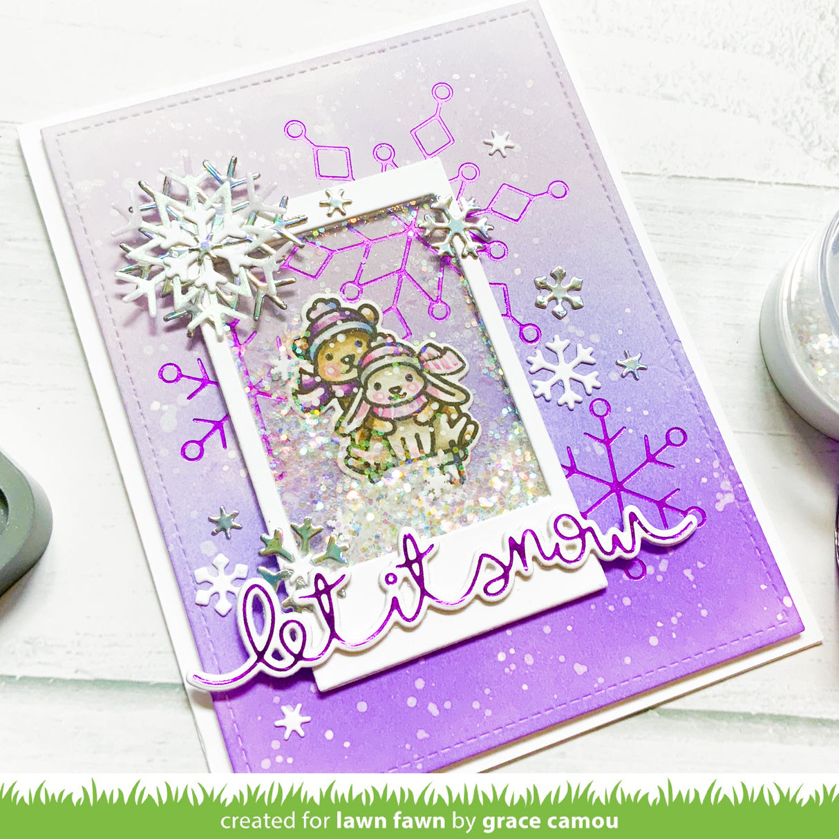 These fun (and cozy) friends are sledding on their way to give you a sweet greeting! This mini set is perfect for quick winter greetings!