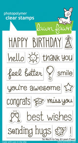 There's so much to say with these hand-drawn sentiments and icons. This set contains 18 clear stamps to help you personalize your cards and crafts.